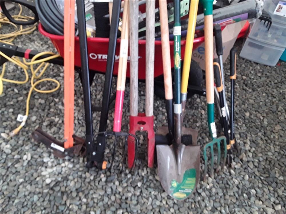 Troy-Bilt Wheel Barrow Filled With Garden Tools And More Most Items have not been tested - 17% Buyer Fee. Payment Processed through Live Auction World ( Visa or Master Card ) pick up Saturday, or Tuesday