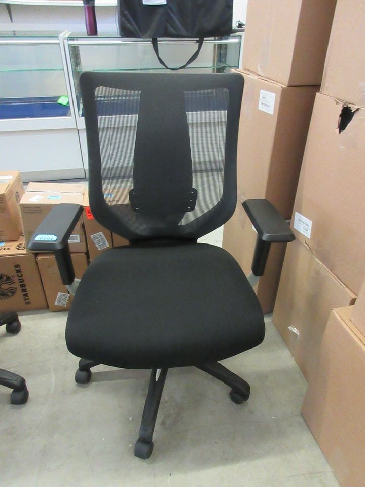 Mesh back. Fabric seat. Adjustable lumbar support.