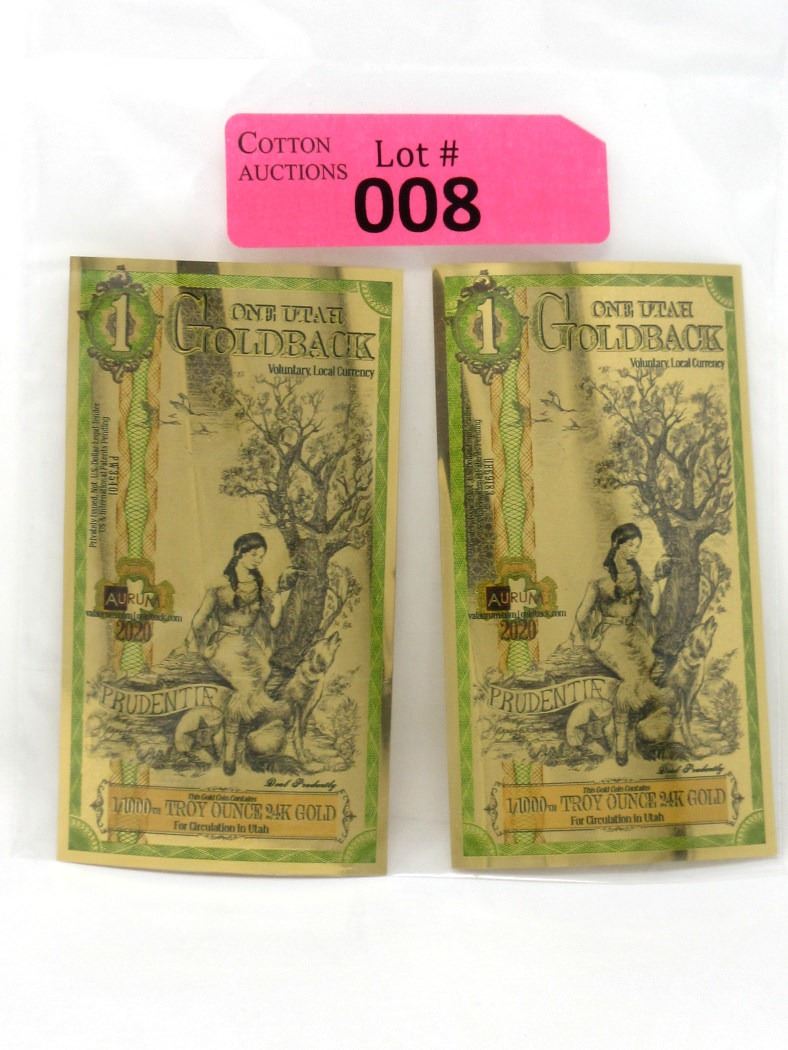Two 1/1000 Oz Fine Gold Utah Goldback Currency