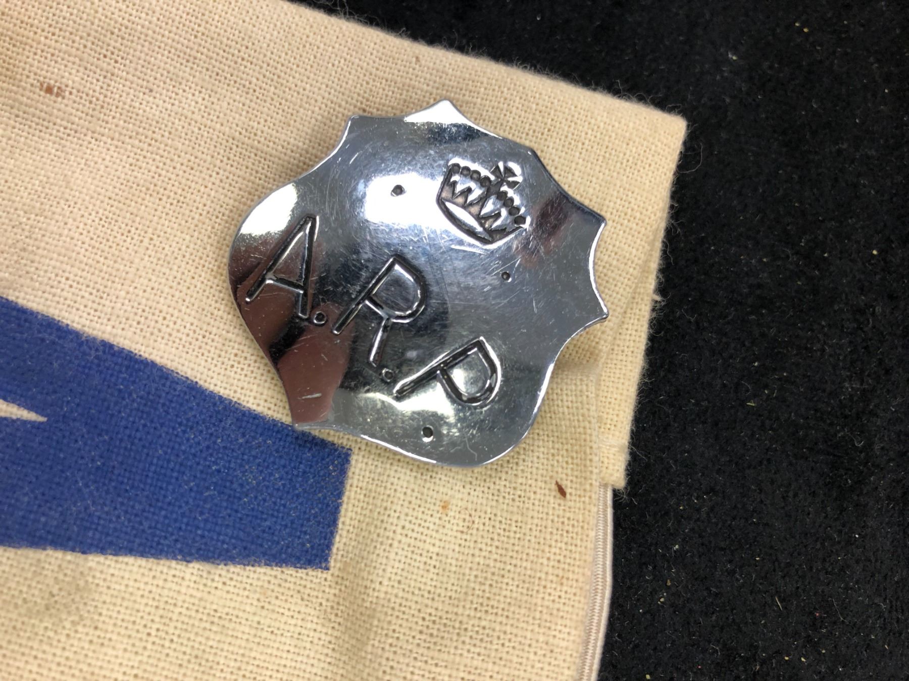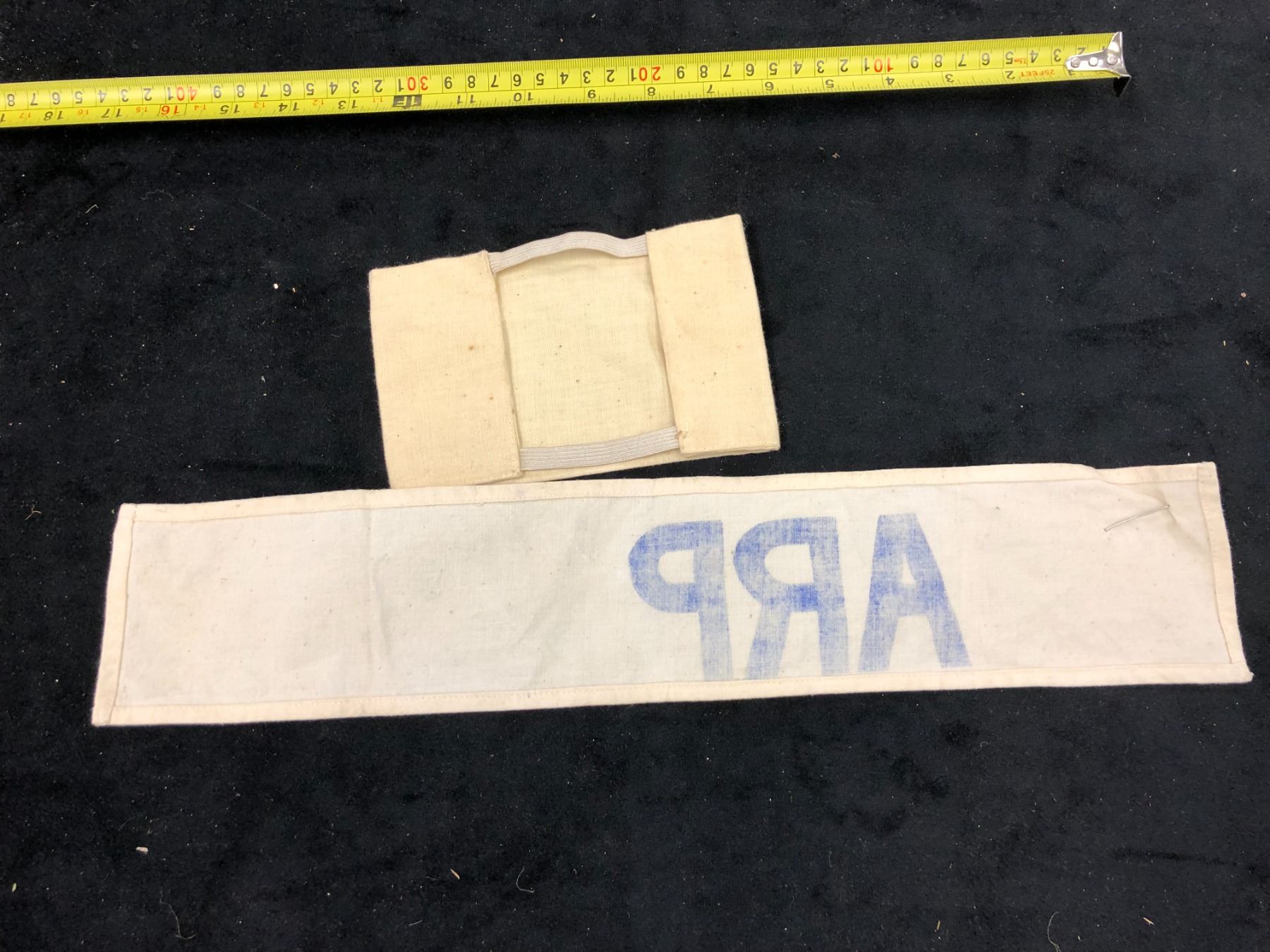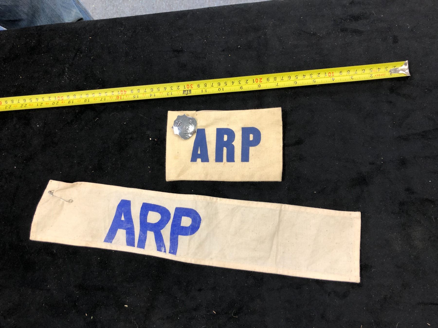 Two Air Raid Precautions (ARP) arm bands & very rare ARP badge