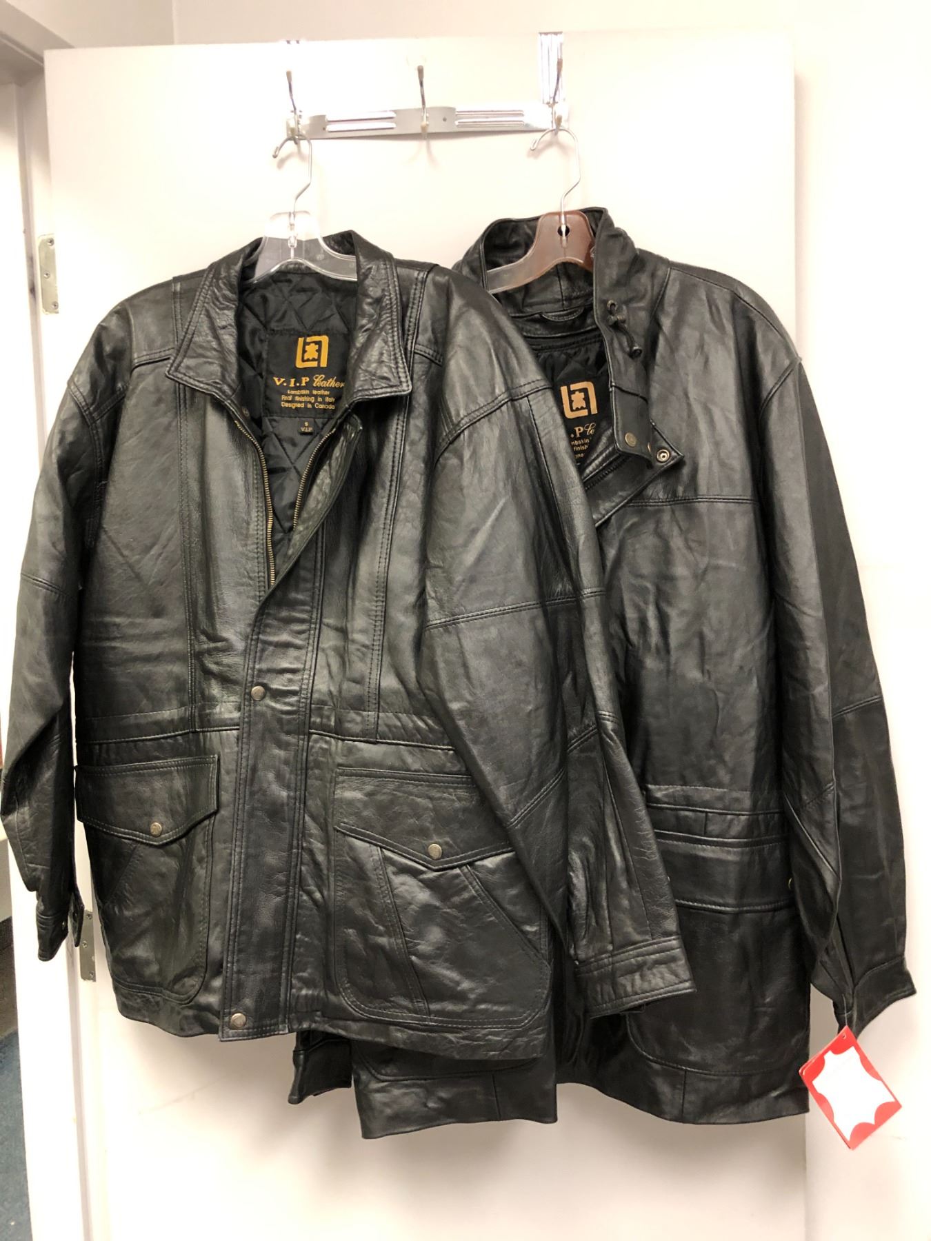 Two Black Leather Pieces - from VIP Leathers Canada - Fine Lambskin - One Small Jacket and One XL Jacket