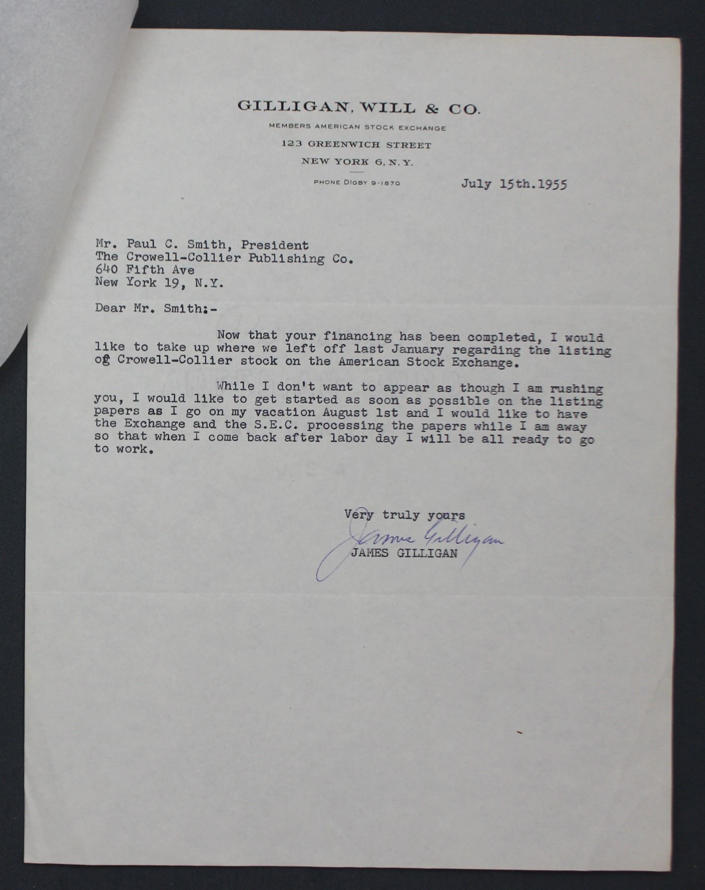 The Americana, letters, and ephemera listed in this auction come directly from the estate of the nephew of the late Paul C. Smith (1908-1976). They have never before been offered to the public.