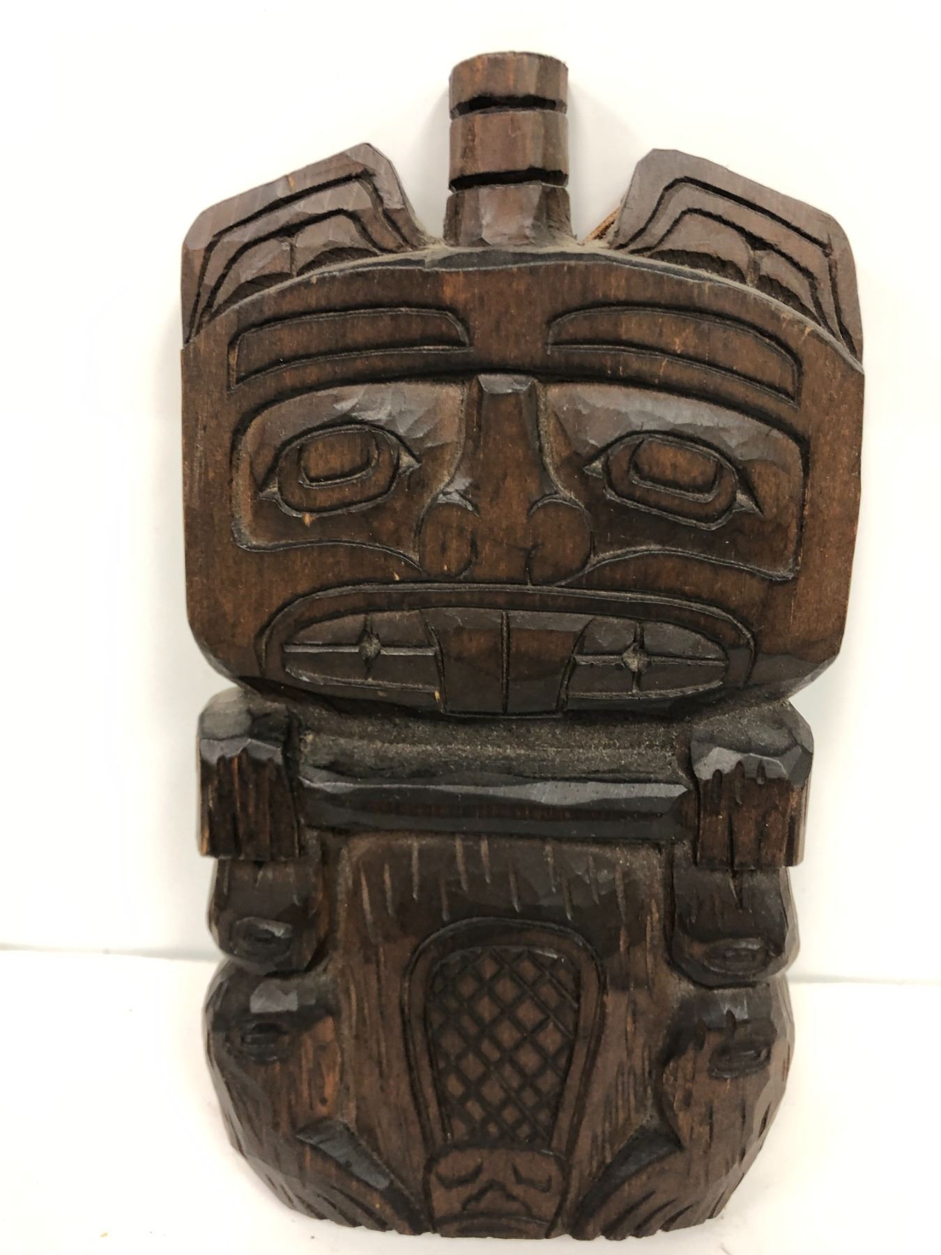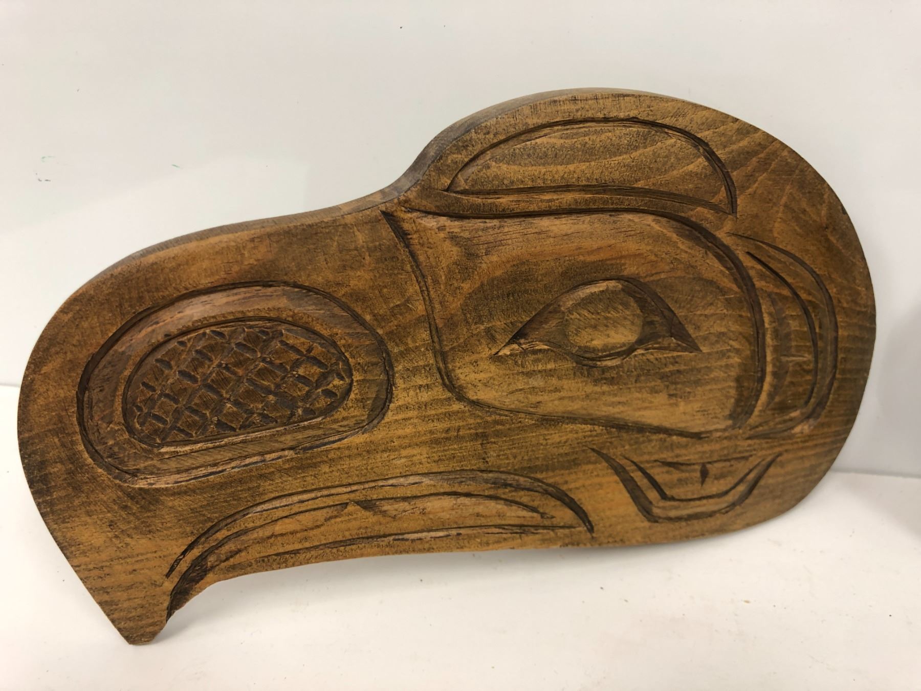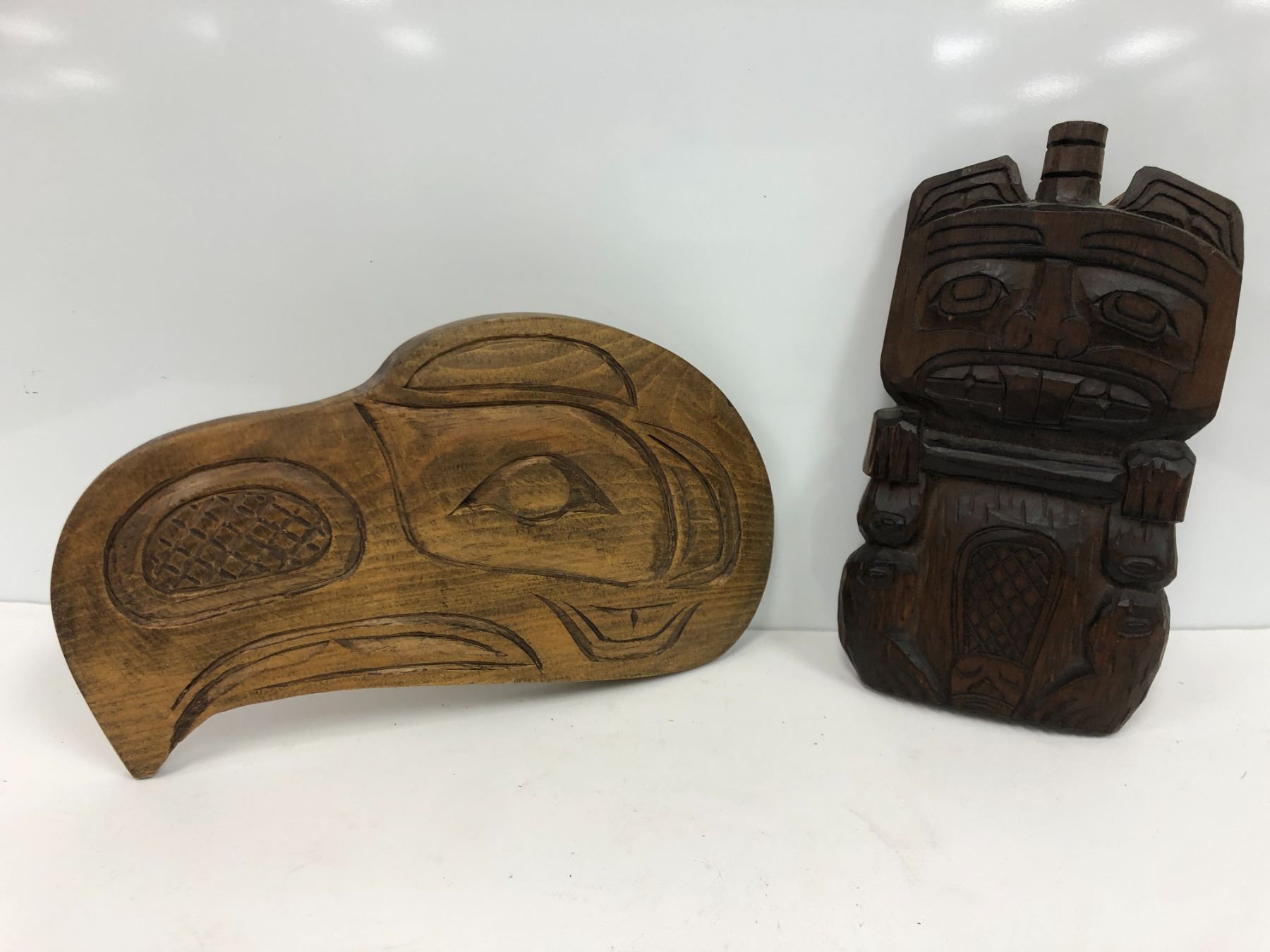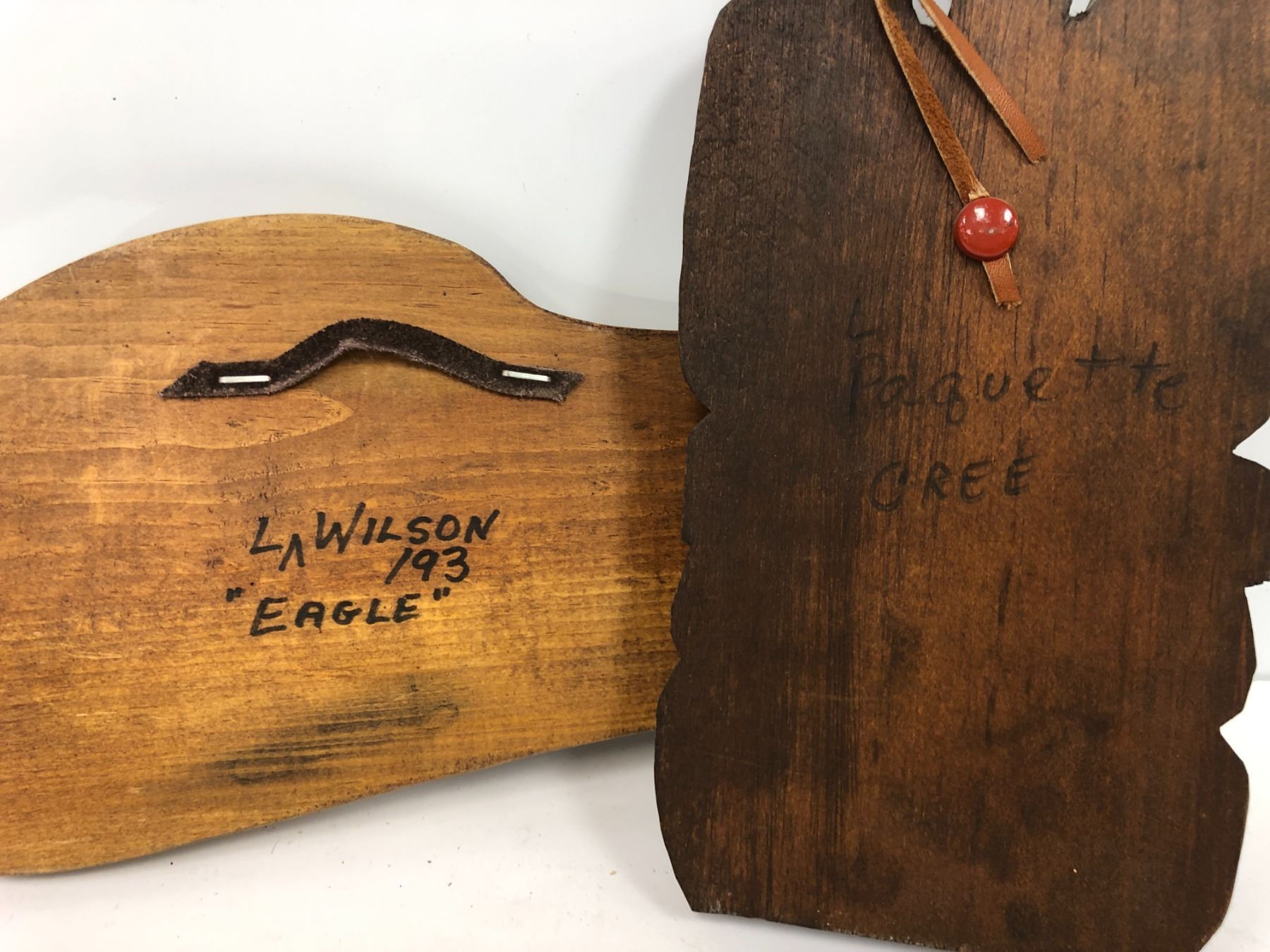 Two First Nations carvings - "Eagle" by L Wilson 1993 & "L Palquette Cree" - Eagle approx. 9 1/2in x 5in & Cree approx. 8in x 4in