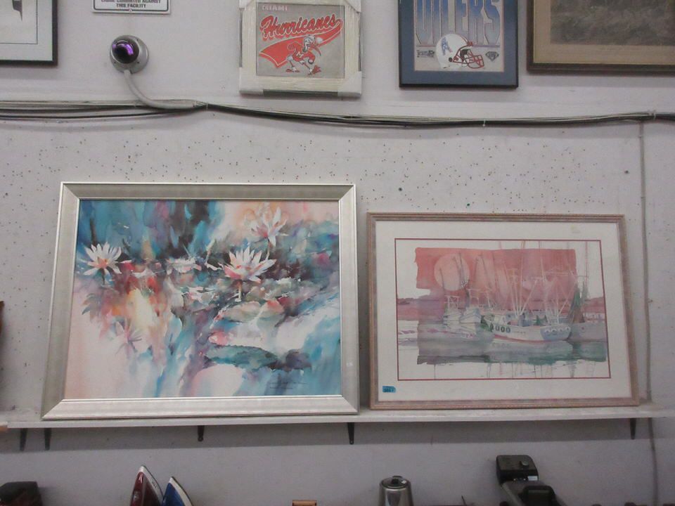 Lady Jane and other boats, 43" x 30" framed. Aquatic Splendor, print on board, 45" x 35" framed.