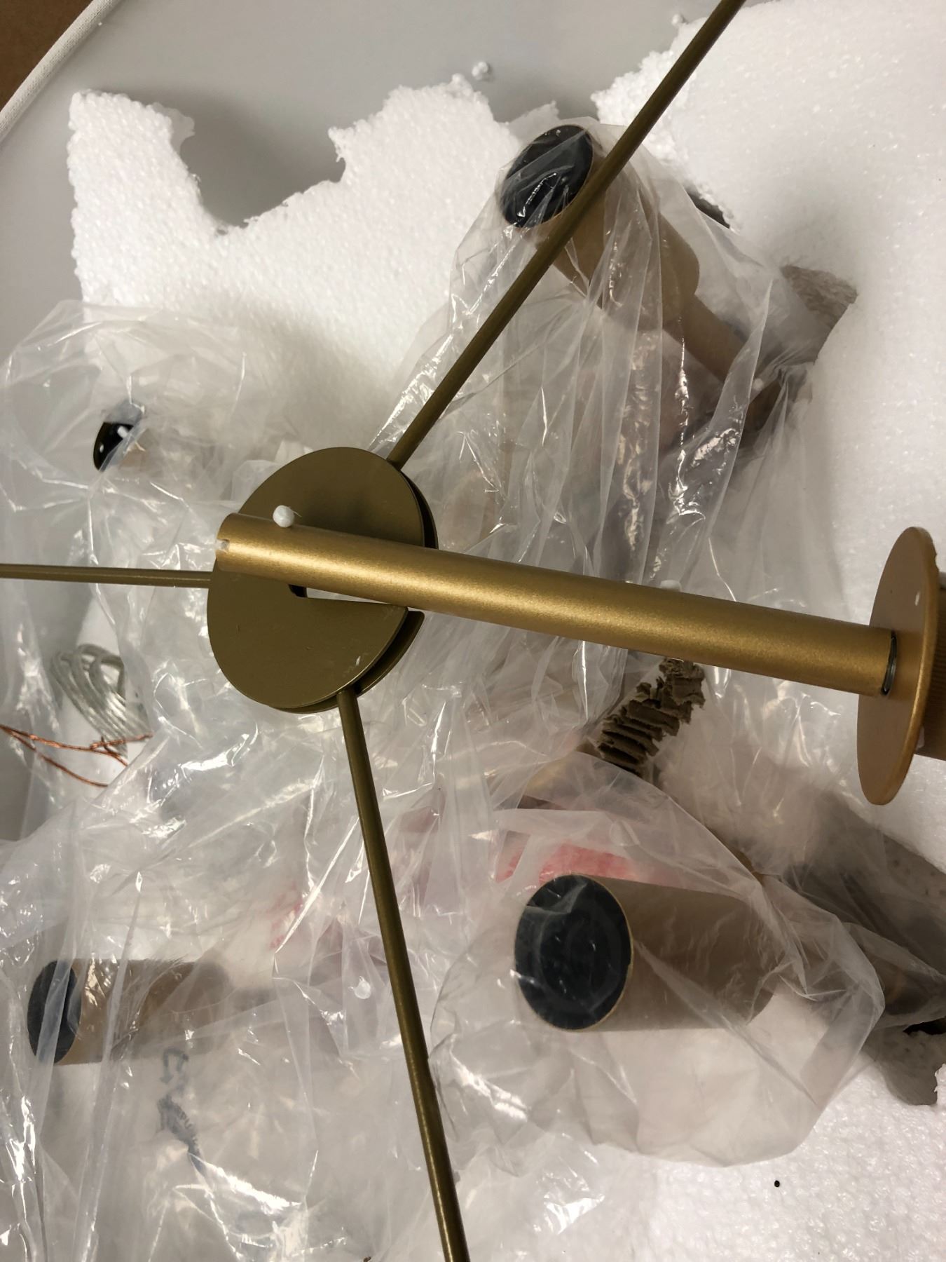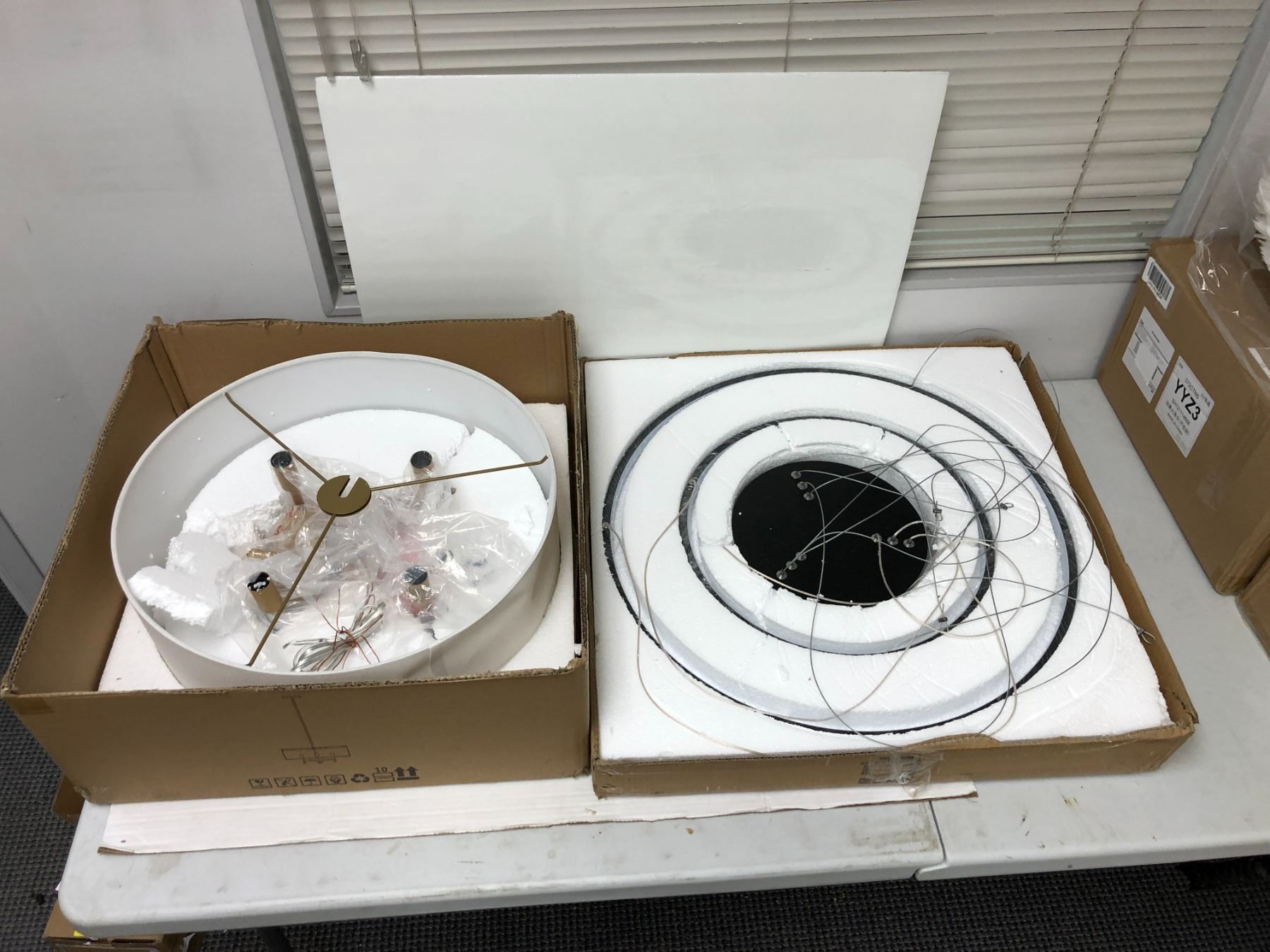 Two Large Light Fixtures - one on cables with rings the other has four lights inside Canvas Cover