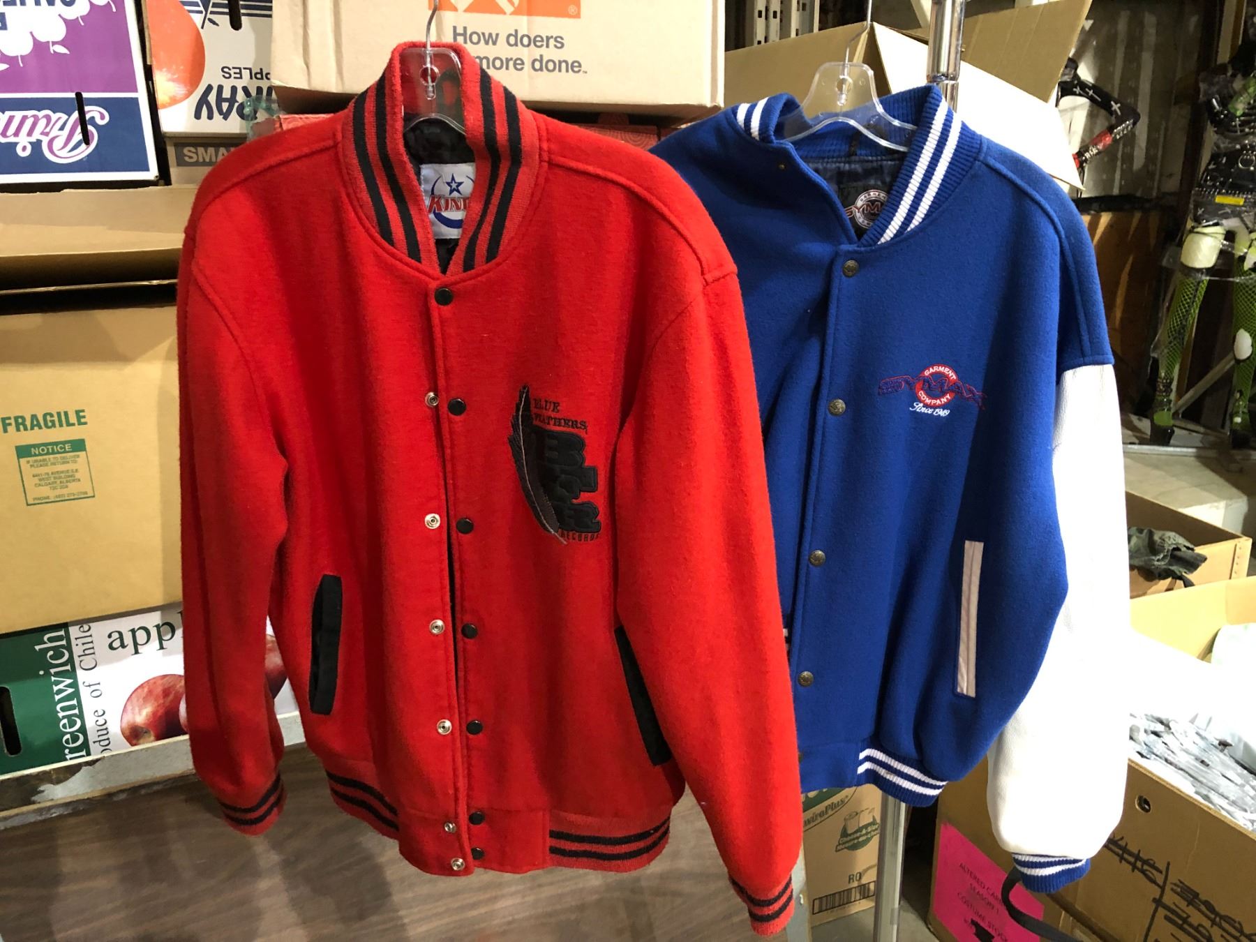 Two Letterman's jackets - Blue Feathers & Symax USA