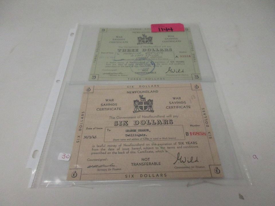 March 1, 1944 Three Dollars Certificate #A93534 and Sept 30, 1945 Six Dollars Certificate #B16858.