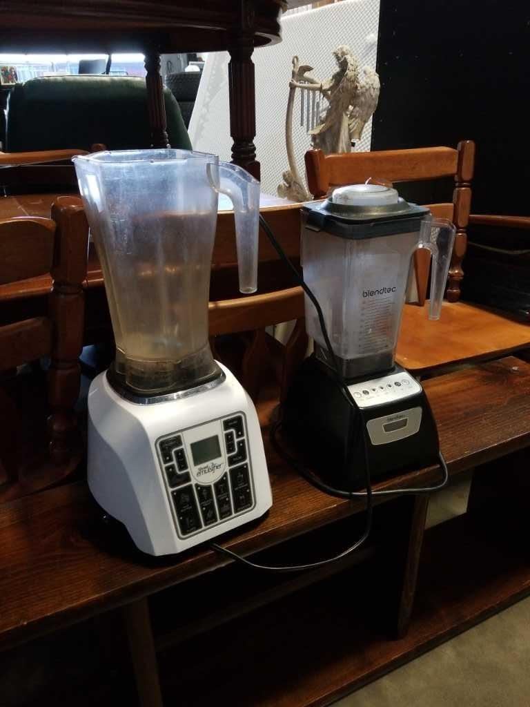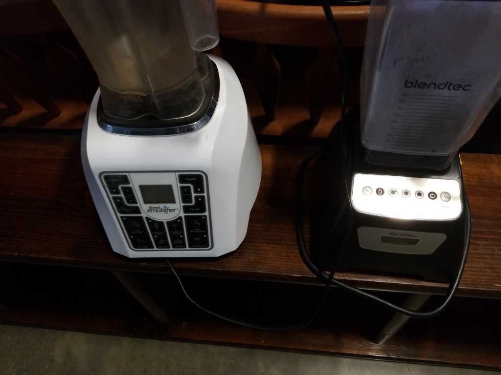 Two blenders shred emulsifier and blendtek both working interchangeable lid