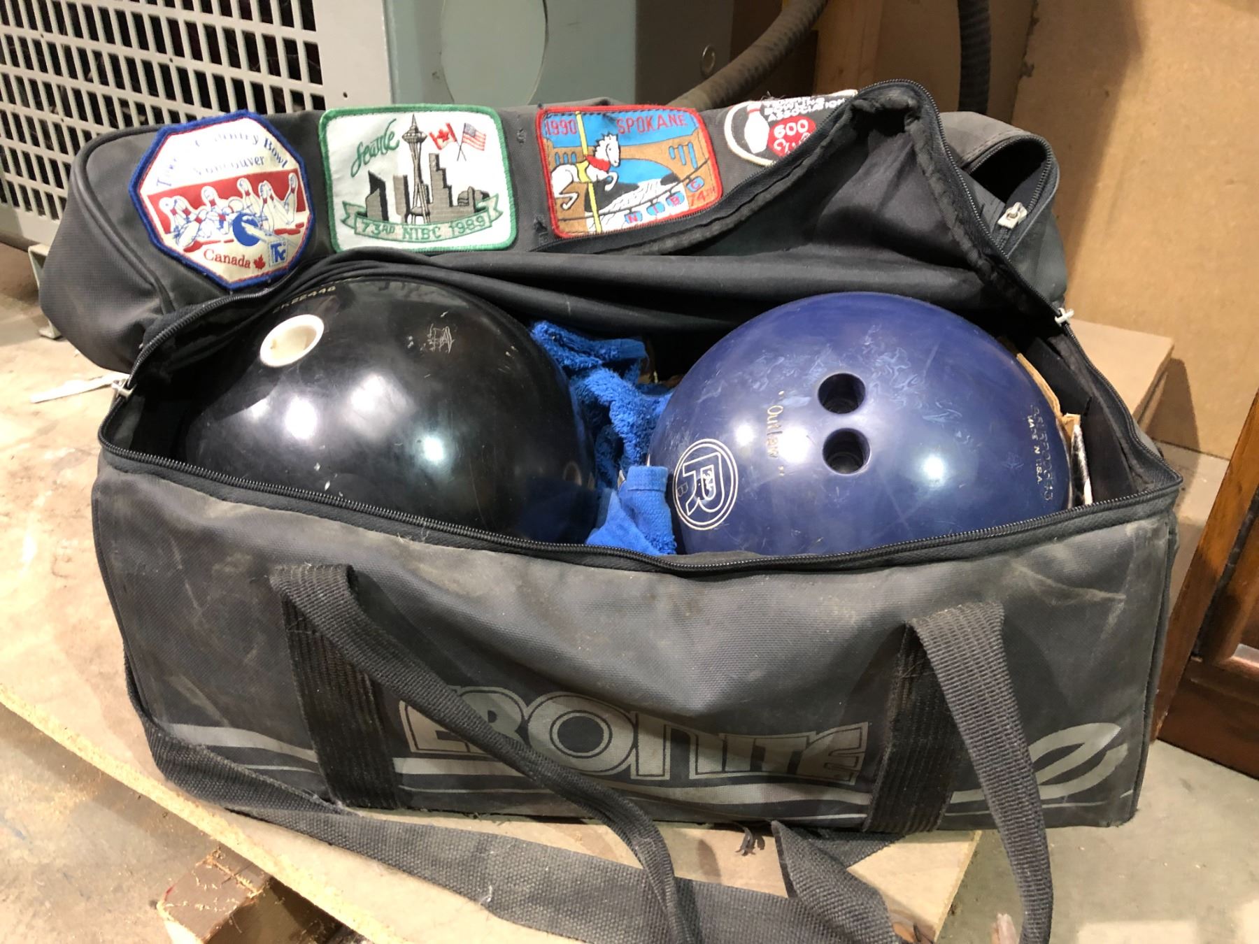 Two bowling balls w/ carrying bag