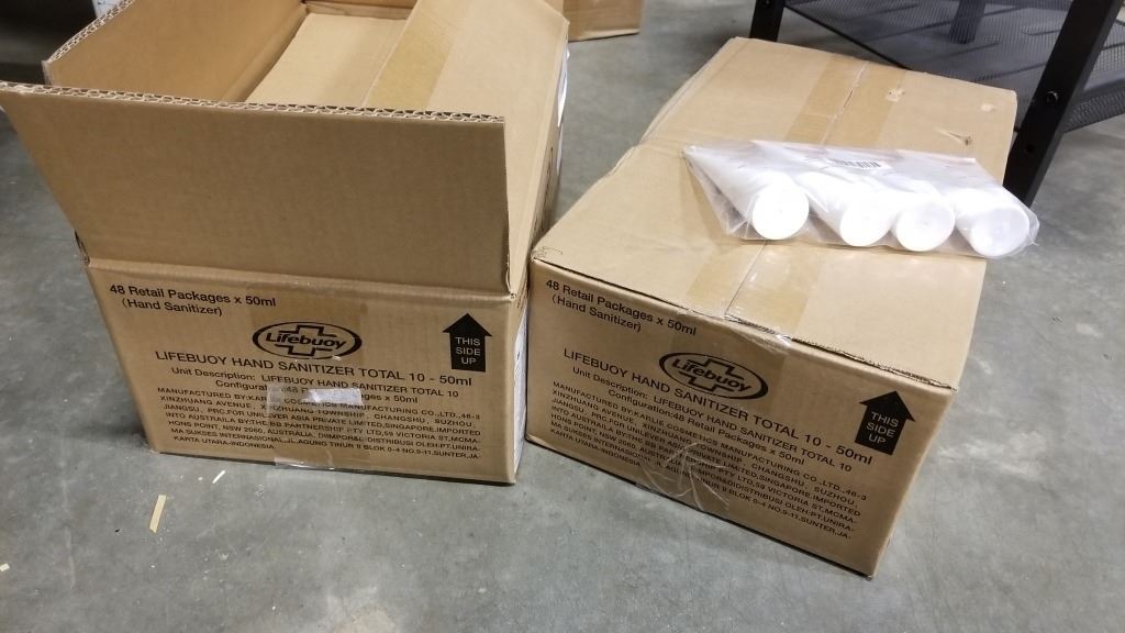 Two boxes of new lifebouy travel size hand sanitizer retail $189