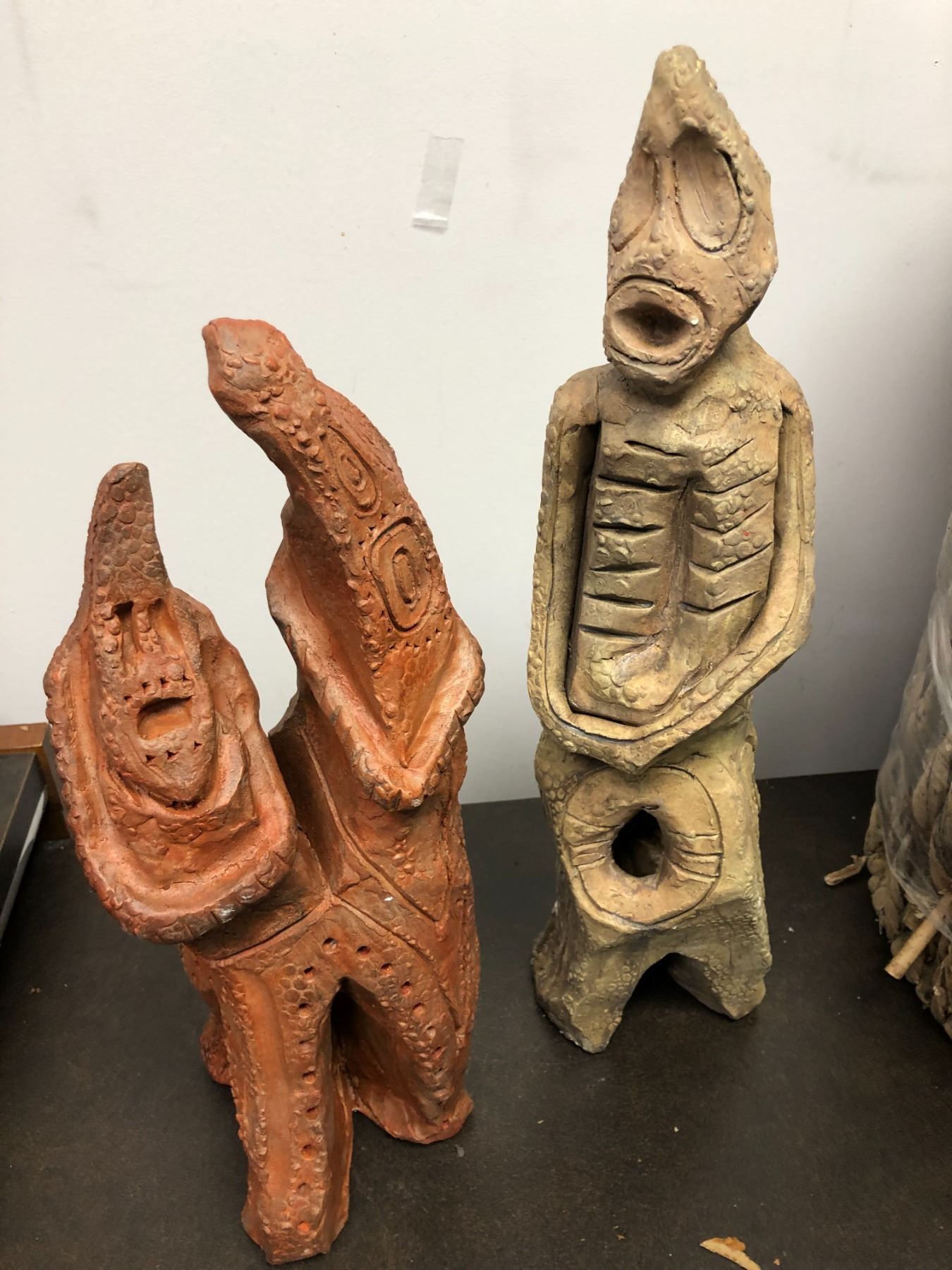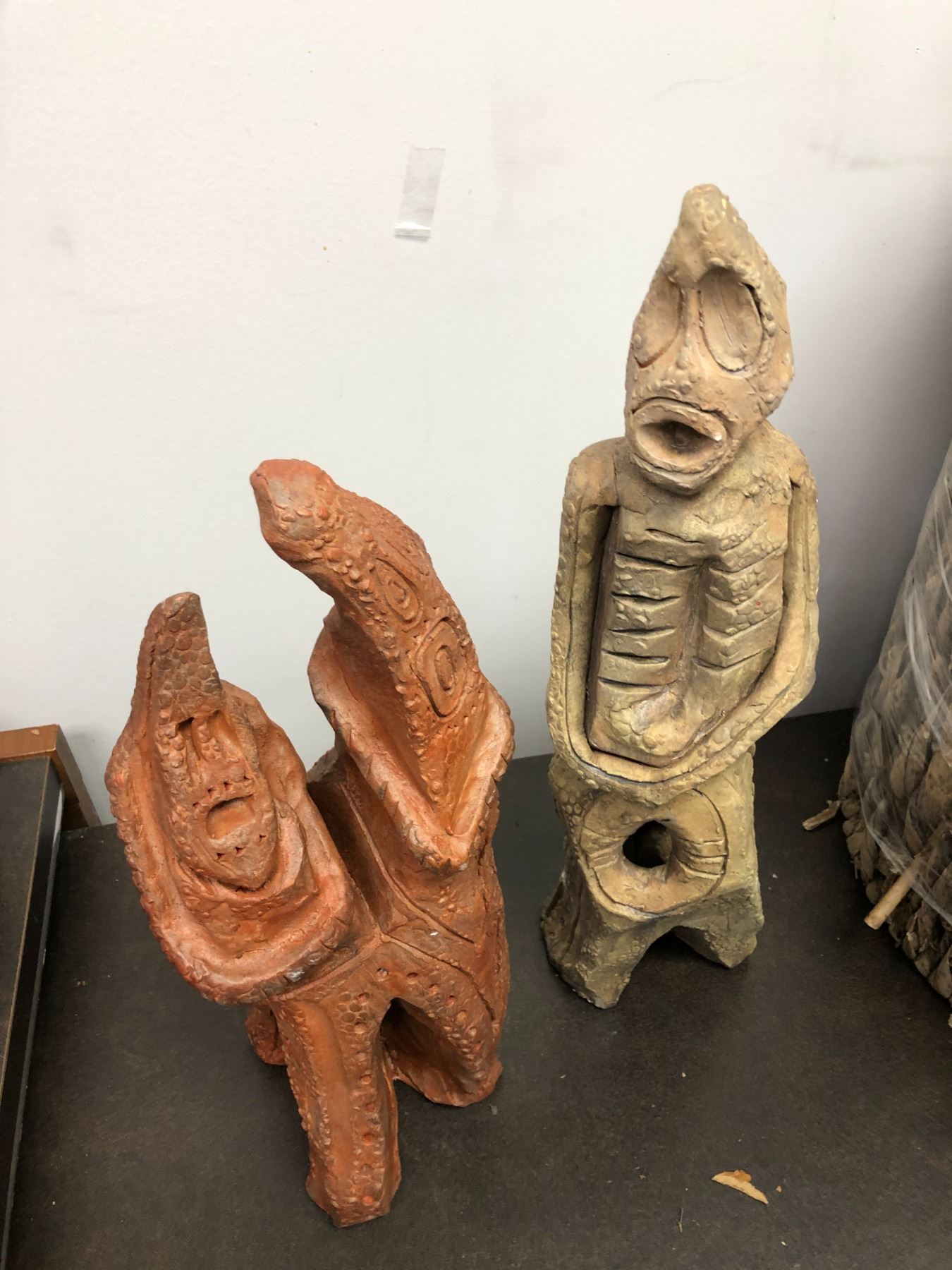 Two clay figurines approx 1 1/2 ft tall from the popular sci-fi tv series