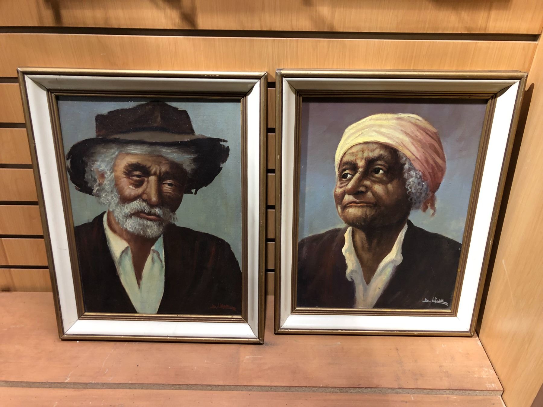 Two framed original oil on canvas paintings - portrait signed by artist bottom right corner