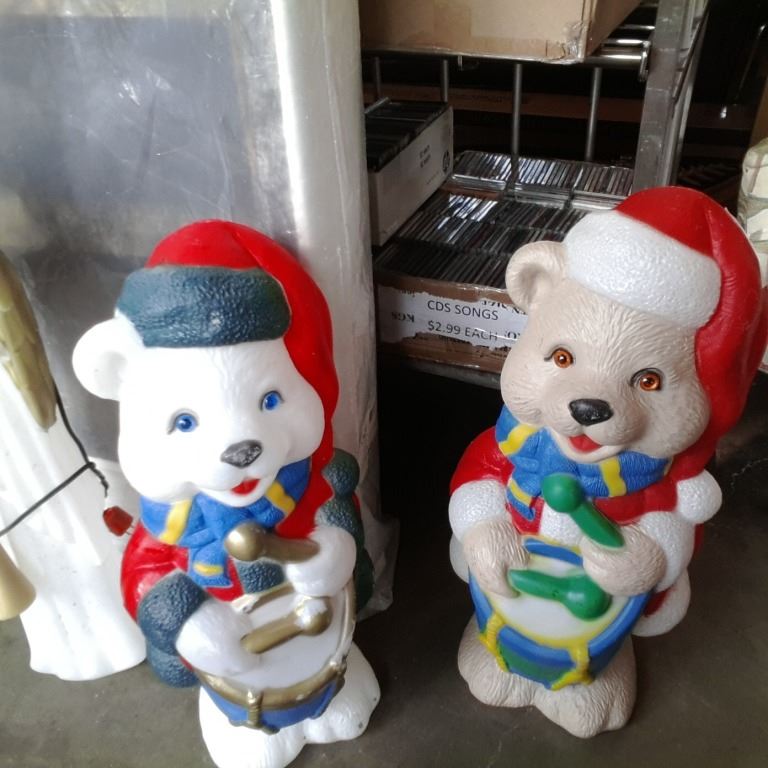 Two illuminated Christmas bear lawn ornaments 30 inches tall