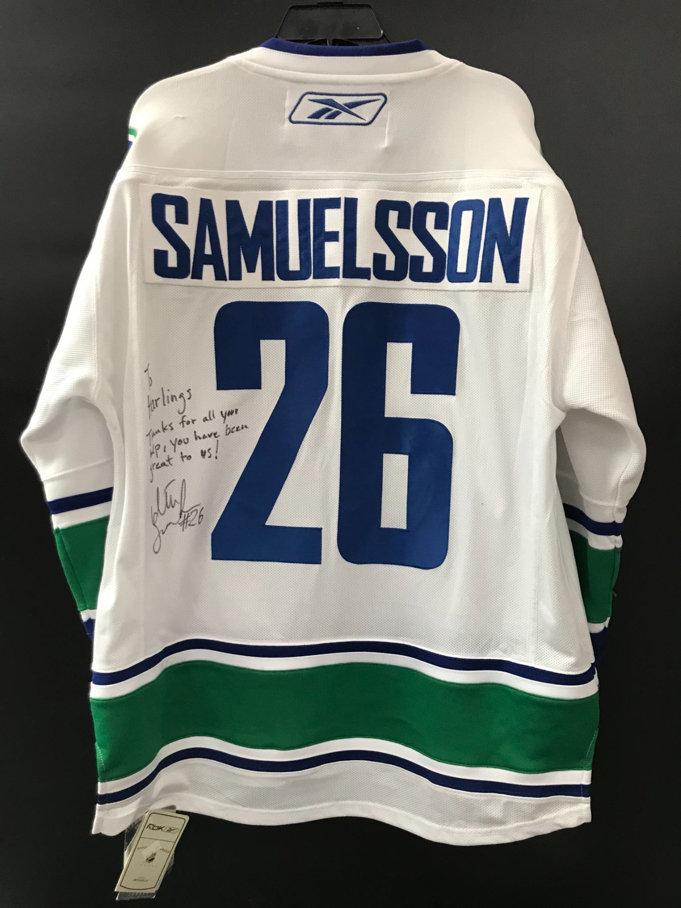 ULF SAMUALESON SIGNED AND INSCRIBED VANCOUVER CANUCKS REEBOK JERSEY (GCG HOLO)
