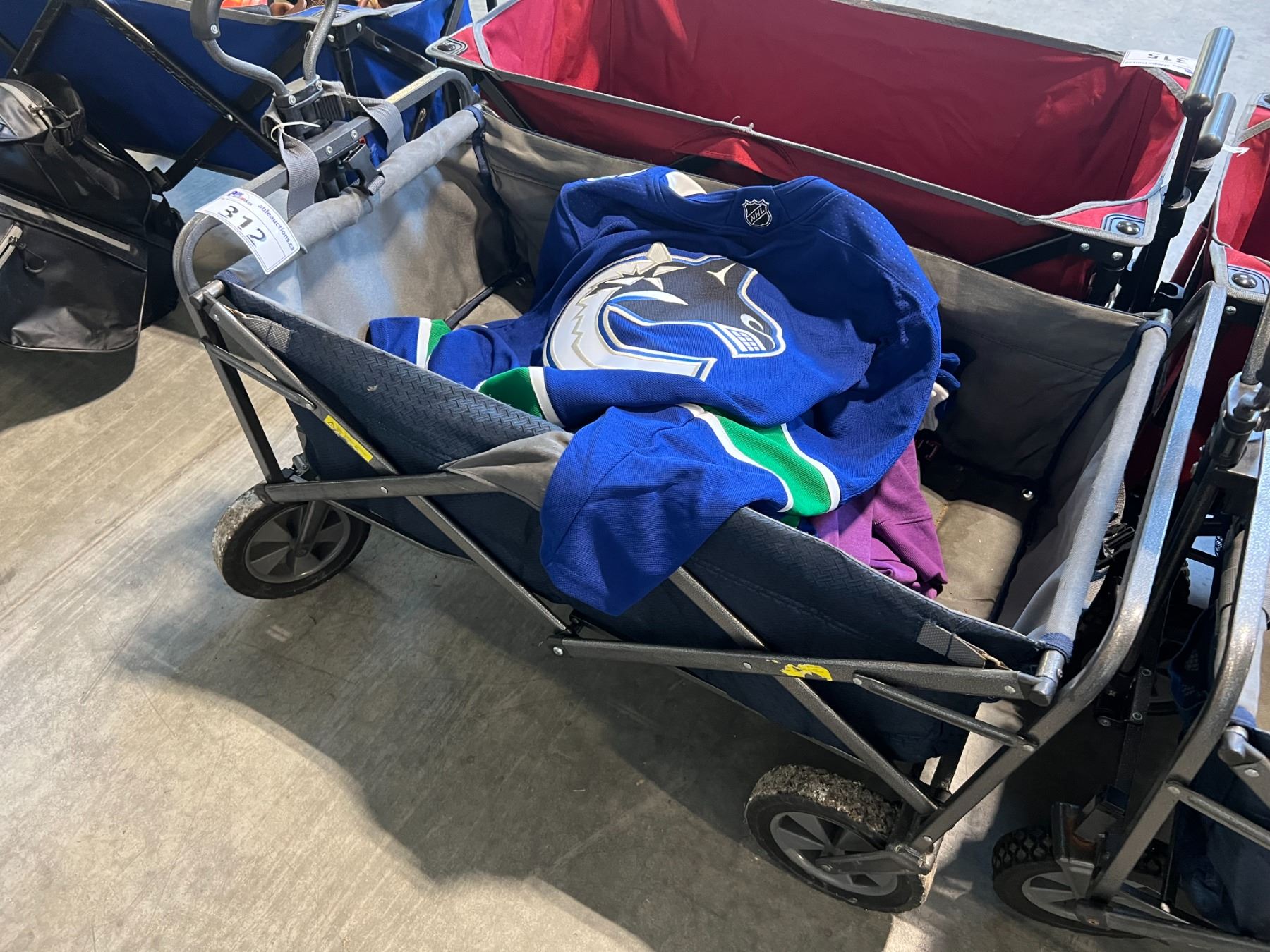 ULINE GREY WAGON WITH ASSORTED JERSEYS AND CLOTHING