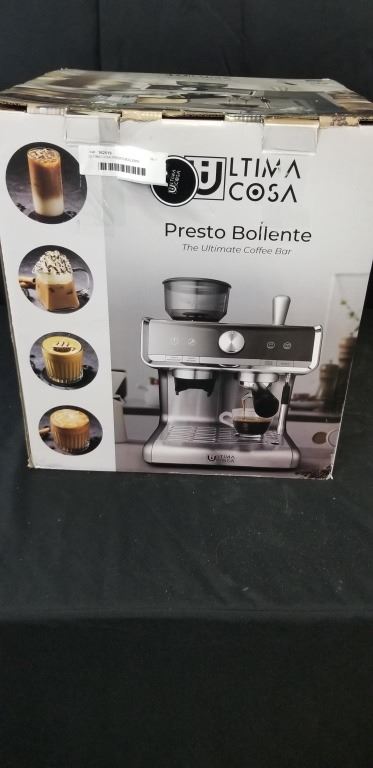 ULTIMA COSA PRESTO BOLLENTE ESPRESSO MACHINE W/ FROTHER AND COFFEE GRINDER - TESTED WORKING - RETAIL $299