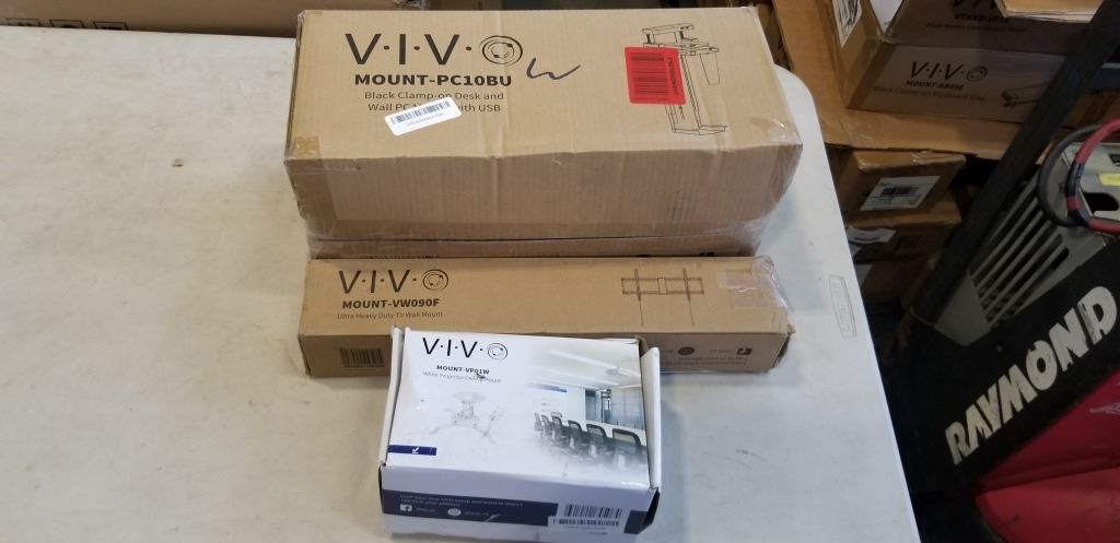 ULTRA HEAVY DUTY TV WALL MOUNT, BLACK CLAMP ON DESK AND WALL PC MOUNT WITH USB AND WHITE CEILING PROJECTOR MOUNT