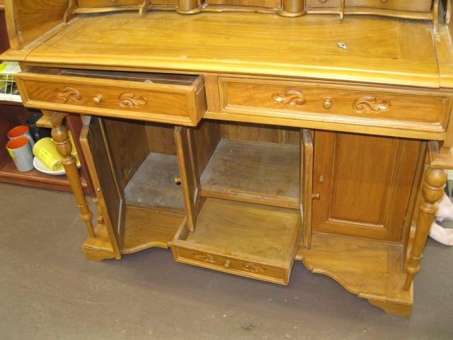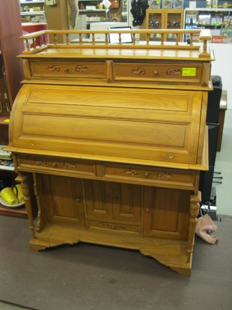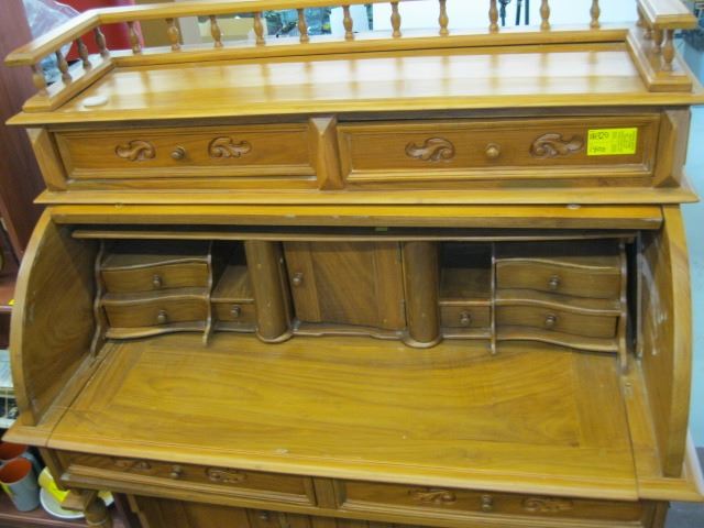 UNIQUE SOLID WOOD DRUM DESK W/STORAGE DRAWERS