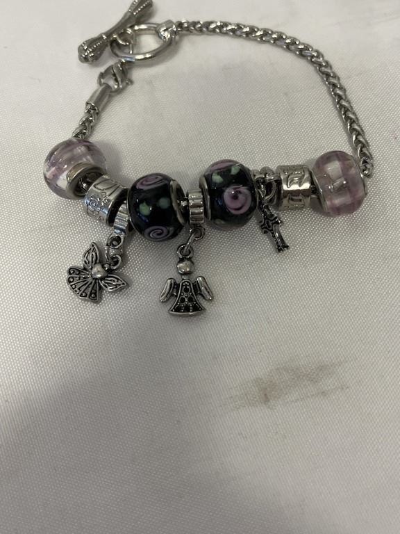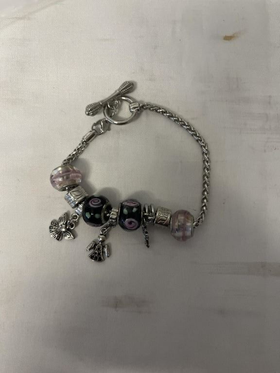 UNMARKED SILVER COLOUR EADS W/ CHARMS BRACELET, ORIGINAL TOGGLE CLOSURE