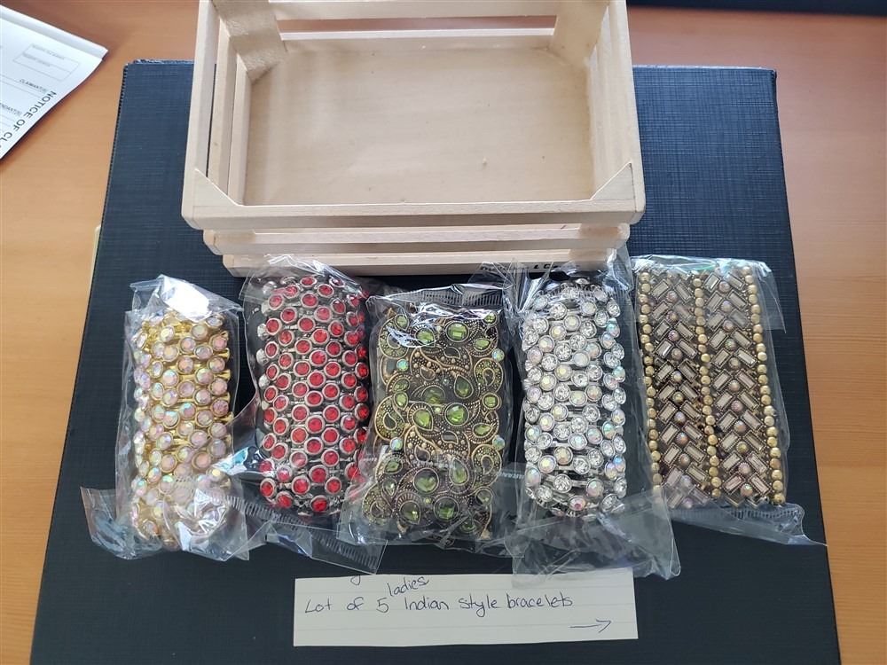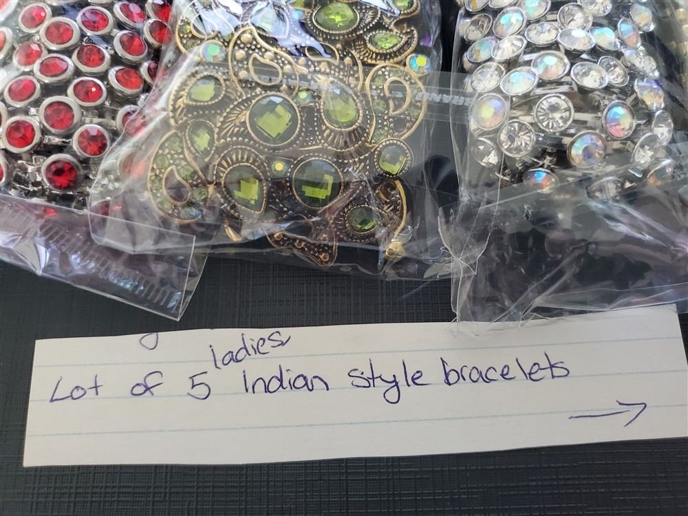 Lot of 5 ladies Indian style bracelets - Most Items have not been tested - Viewing Recommended- 17% Buyer Fee. Payment Processed through Live Auction World ( Visa or Master Card ) pick up Wednesday