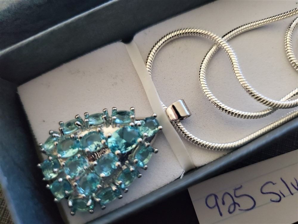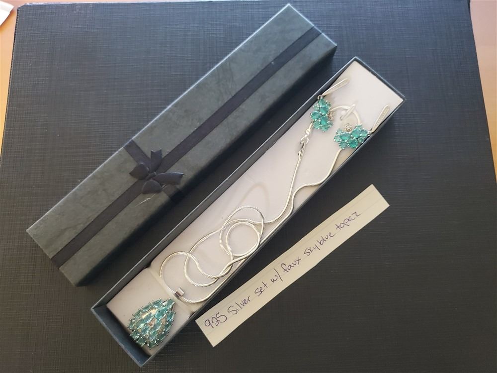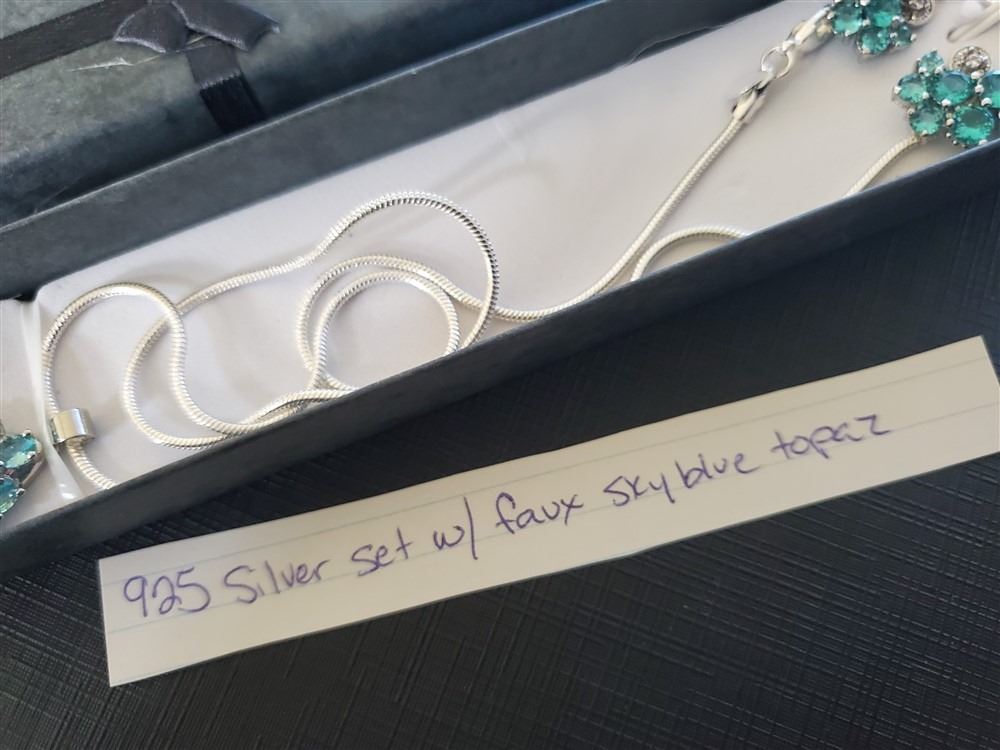 Silver set with faux sky blue topaz - Most Items have not been tested - Viewing Recommended- 17% Buyer Fee. Payment Processed through Live Auction World ( Visa or Master Card ) pick up Wednesday
