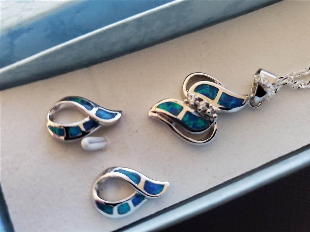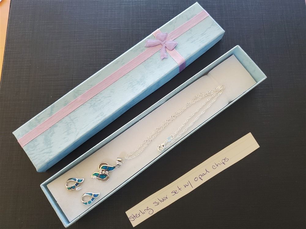 Sterling silver set with opal chips - Most Items have not been tested - Viewing Recommended- 17% Buyer Fee. Payment Processed through Live Auction World ( Visa or Master Card ) pick up Wednesday