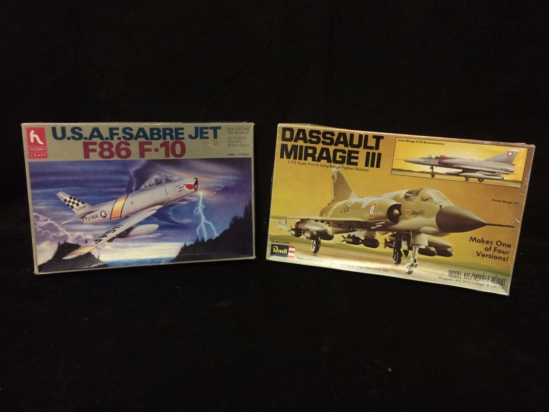 USA F SABRE JET F86 F-10 & DASSAULT MIRAGE III MODEL KITS IN BOX