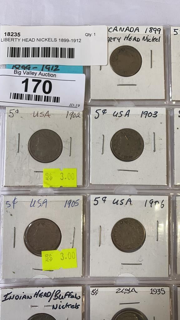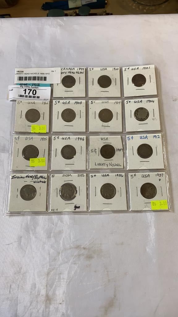 USA LIBERTY HEAD NICKELS 1899-1912 INDIAN HEAD BUFFALO NICKELS 1935-1937