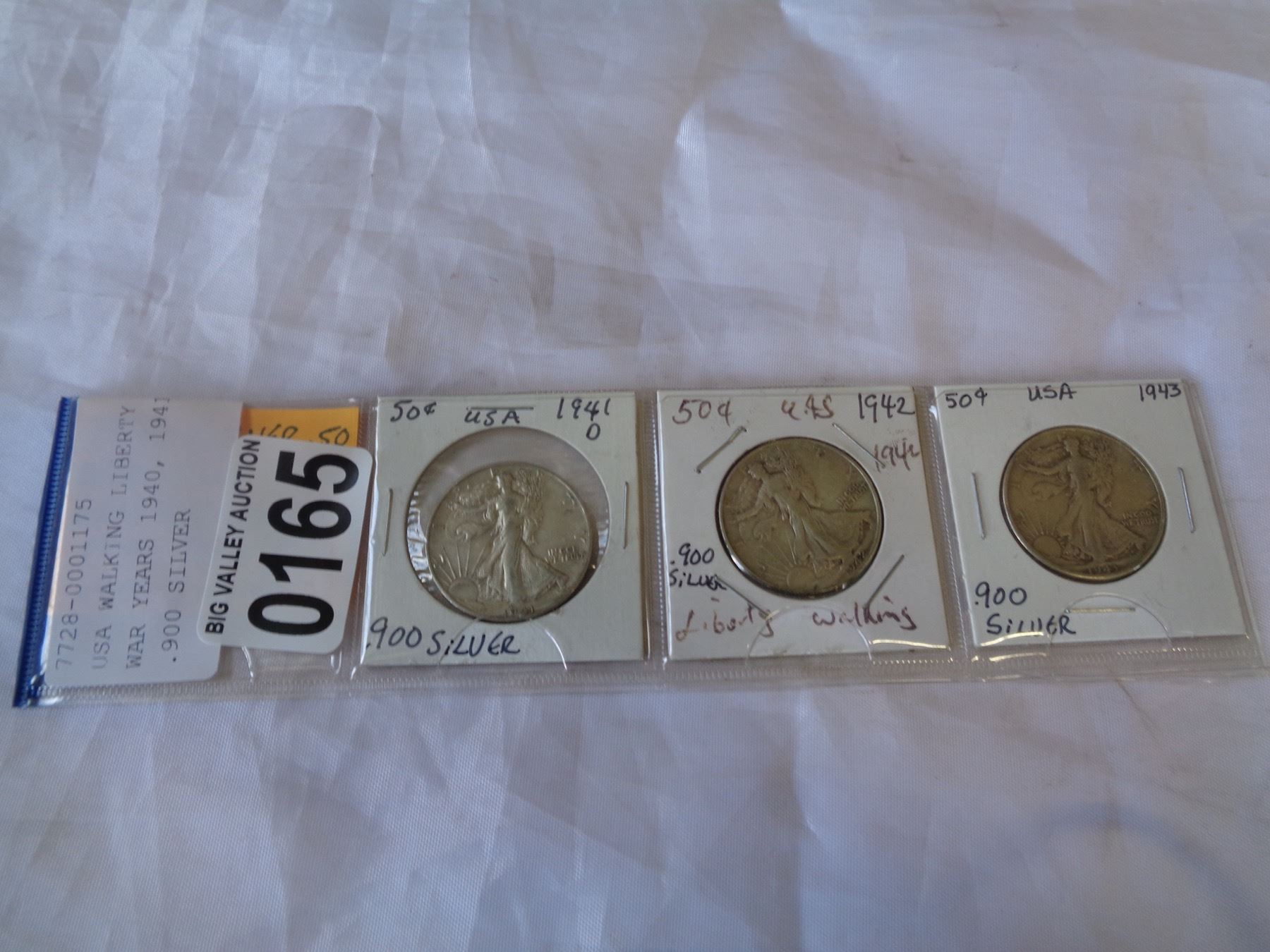 USA WALKING LIBERTY 50 CENT WAR YEARS 1940, 1941, 1942 .900 SILVER