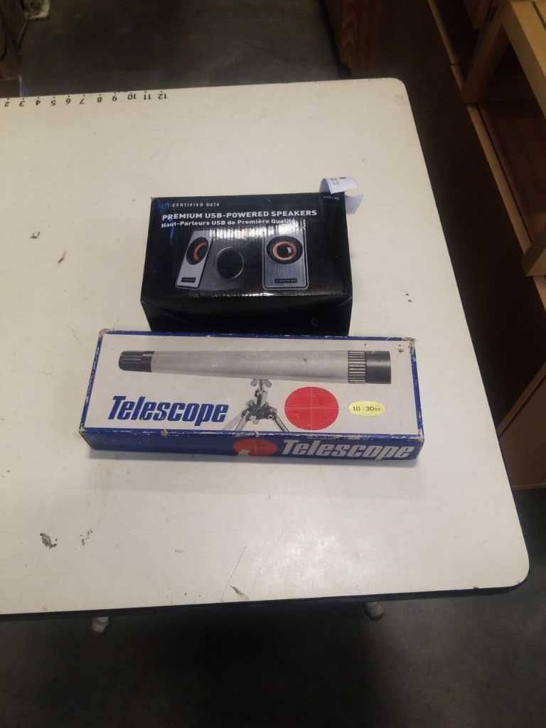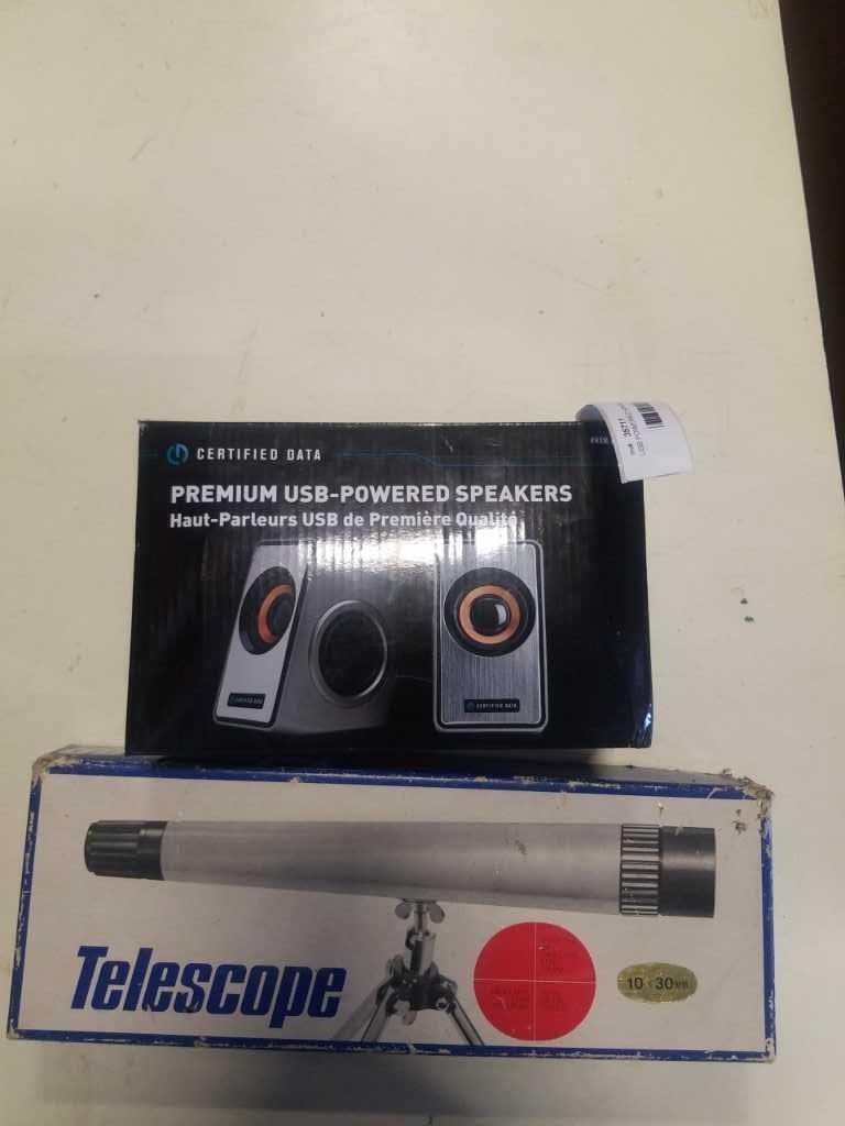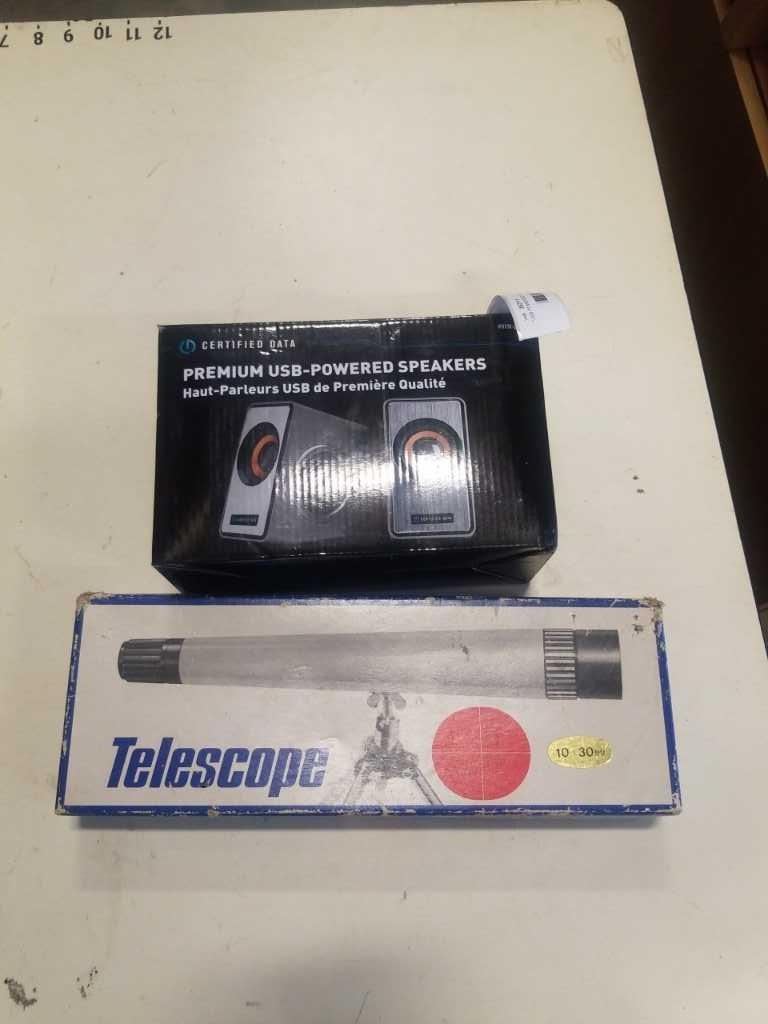 USB POWERED SPEAKERS AND TELESCOPE - NO TRIPOD