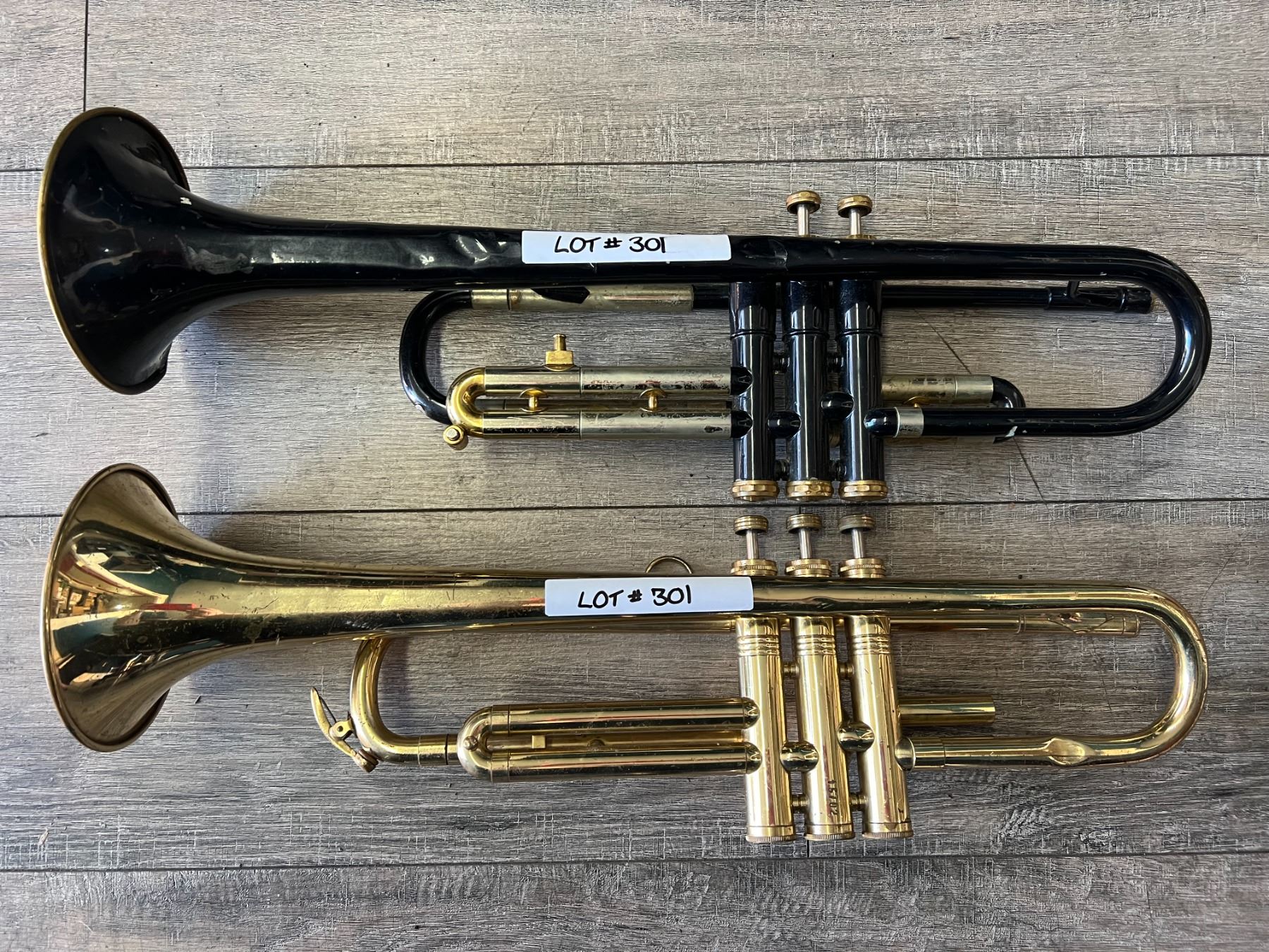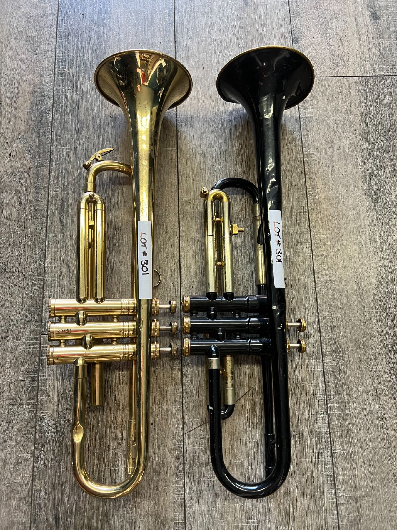 - 1 black coloured trumpet, 1 gold coloured trumpet