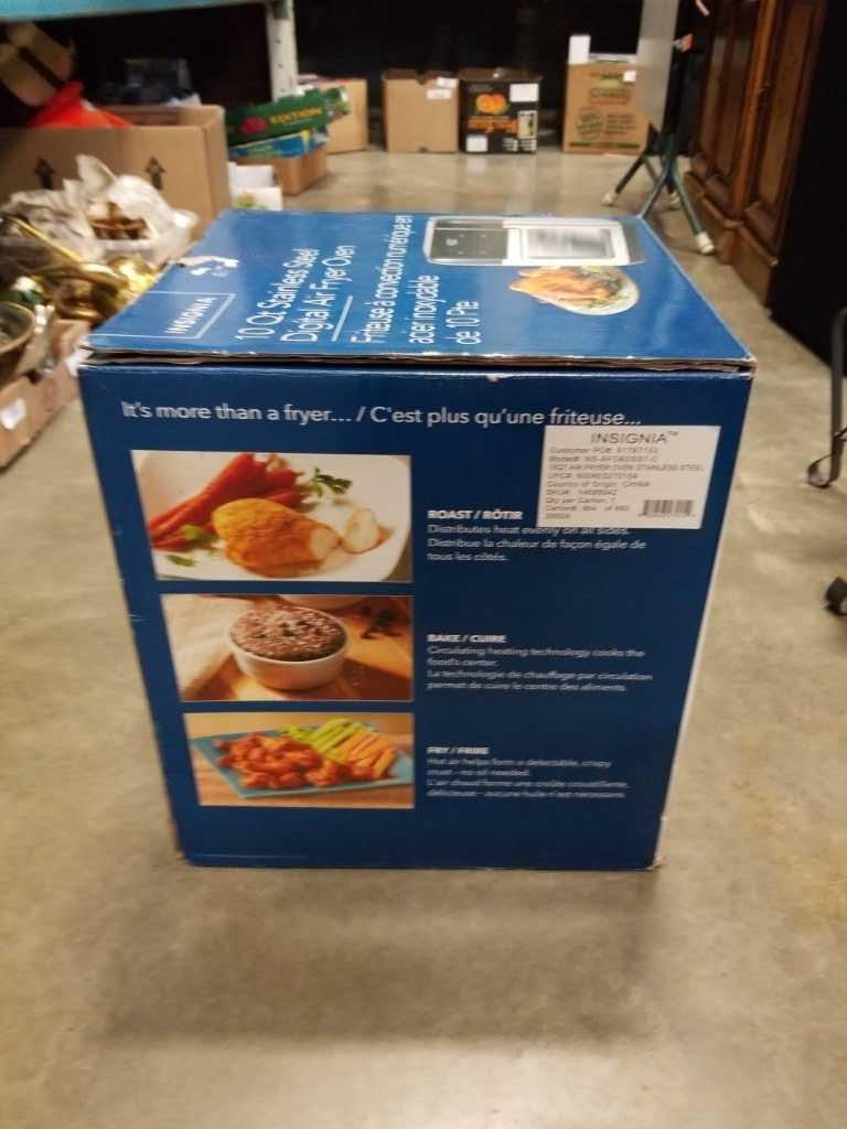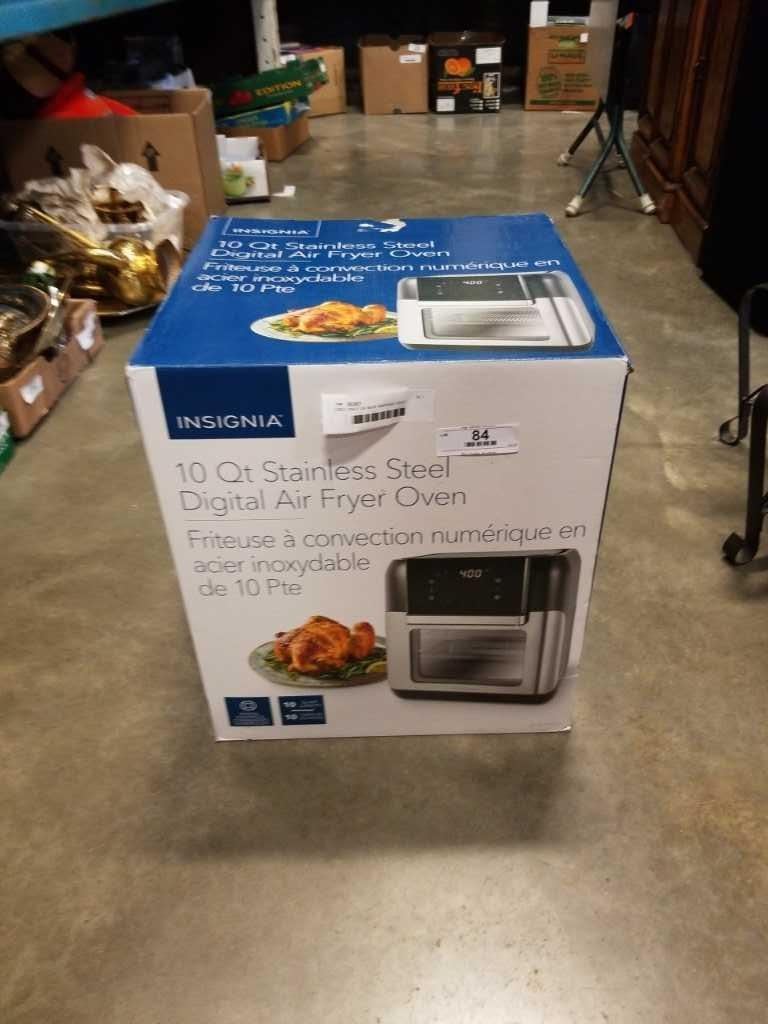 USED ONCE AS NEW INSIGNIA 10QT STAINLESS STEEL DIGITAL AIR FRYER OVEN