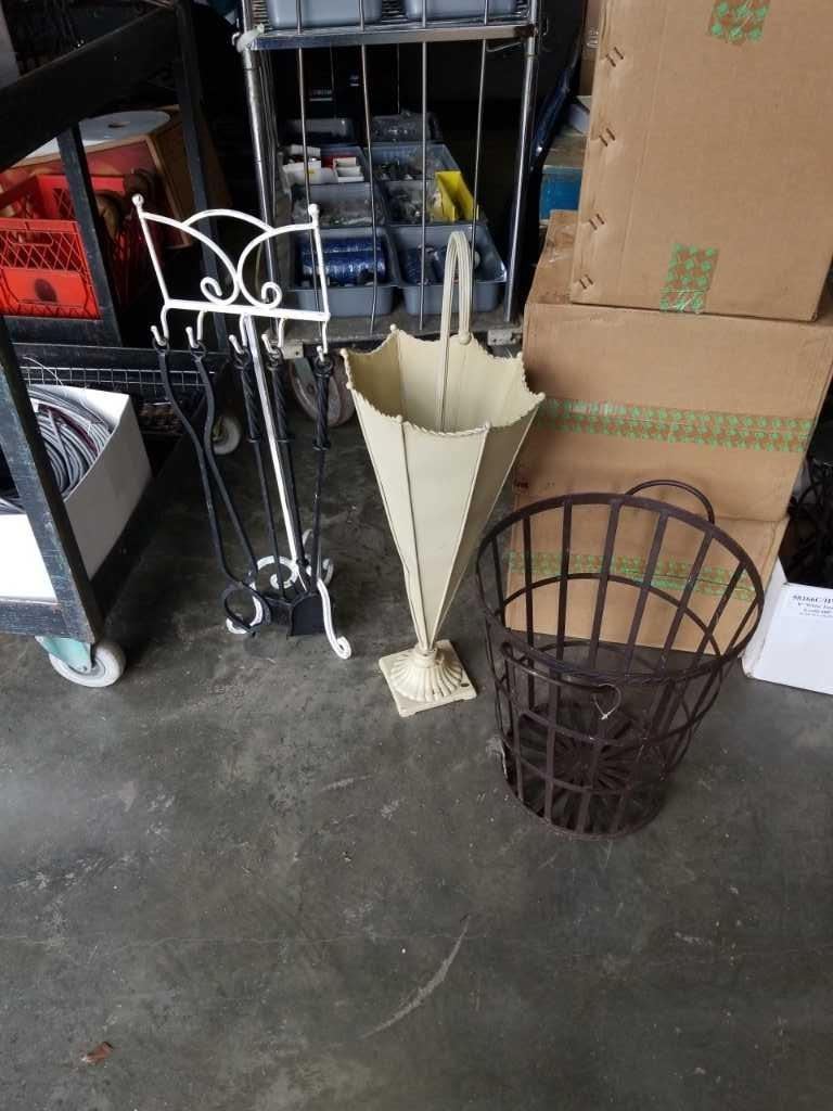 Umbrella stand, decorative metal bin and companion set