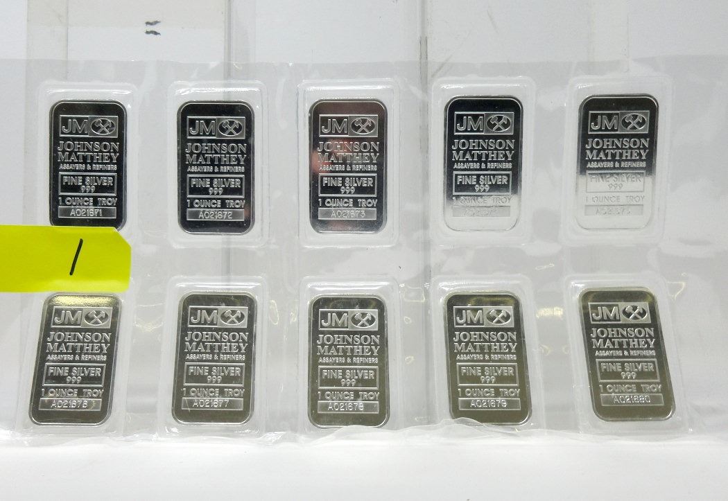 Ten 1 ounce .999 fine silver bars. Total of 10 ounces. Consecutive serial numbers. Tax exempt.