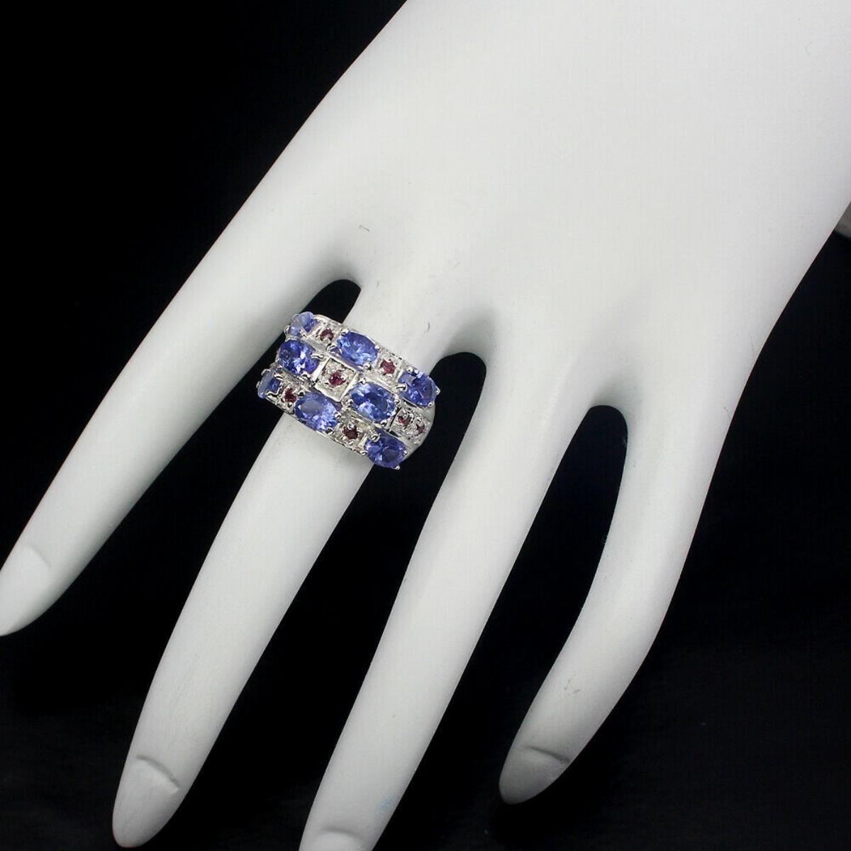 925 STERLING SILVER;PLATE-14K WHITE GOLD;RING SIZE-7(resizeable)MAIN STONE-TANZANITE;OTHER GEMS-RHODOLITE GARNET;TOTAL WEIGHT-10.29 GRAM (TOTAL WEIGHT OF SILVER + STONE)DIMENSION* STONE 2.0 TO 6.0 X 4.0 MM. * RING SIZE 7.0 * FACE RING 23.0 X 14.0 MM.;MAIN STONE SHAPEOVAL CUT;MAIN STONE COLORTOP RICH BLUE VIOLET;CLARITY/GRADE-TRANSPARENT;LUSTER-GORGEOUS;TREATMENT-UNHEATED;ORIGINTANZANIA - AFRICA;HARDNESS-7.0 - 7.5;