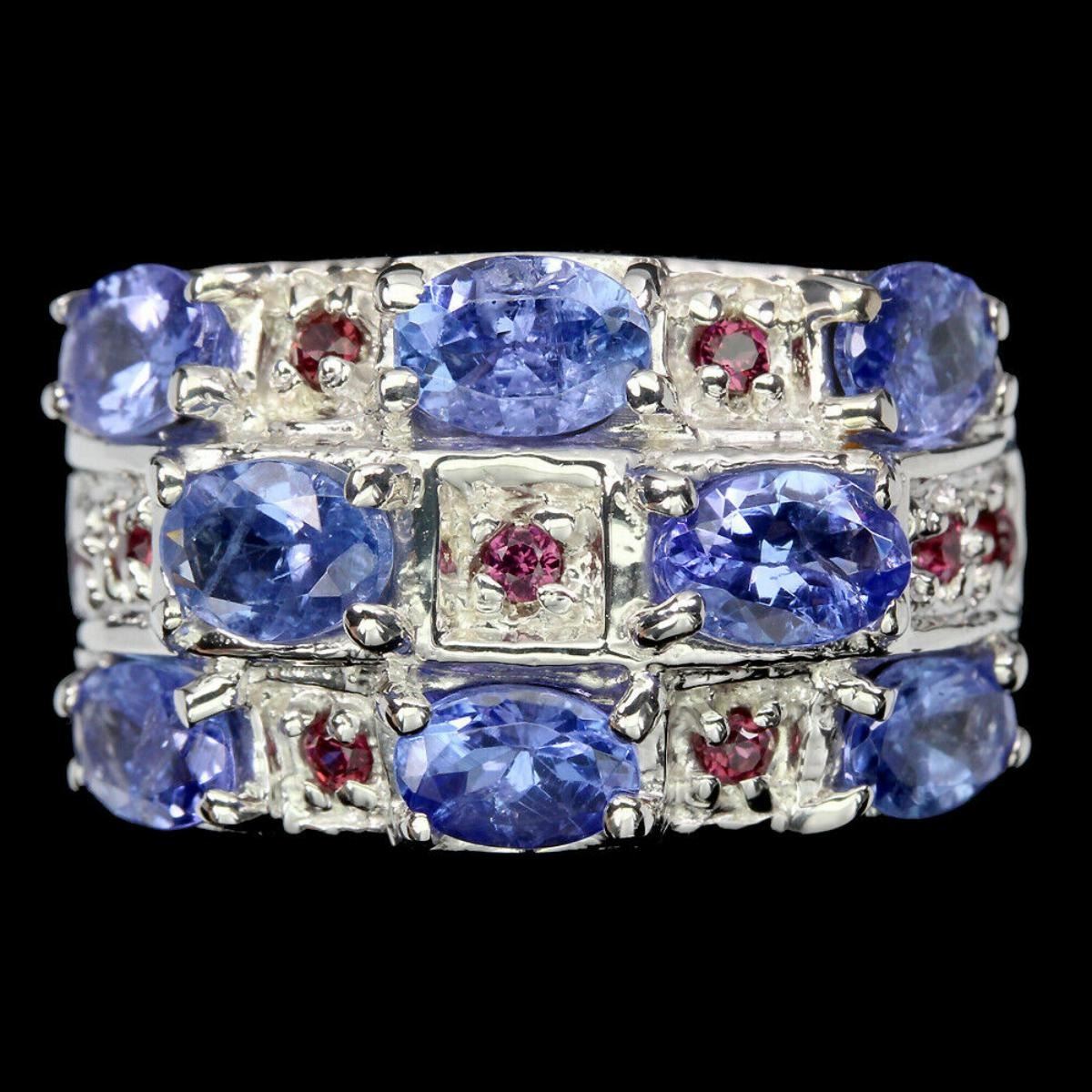 925 STERLING SILVER;PLATE-14K WHITE GOLD;RING SIZE-7(resizeable)MAIN STONE-TANZANITE;OTHER GEMS-RHODOLITE GARNET;TOTAL WEIGHT-10.29 GRAM (TOTAL WEIGHT OF SILVER + STONE)DIMENSION* STONE 2.0 TO 6.0 X 4.0 MM. * RING SIZE 7.0 * FACE RING 23.0 X 14.0 MM.;MAIN STONE SHAPEOVAL CUT;MAIN STONE COLORTOP RICH BLUE VIOLET;CLARITY/GRADE-TRANSPARENT;LUSTER-GORGEOUS;TREATMENT-UNHEATED;ORIGINTANZANIA - AFRICA;HARDNESS-7.0 - 7.5;