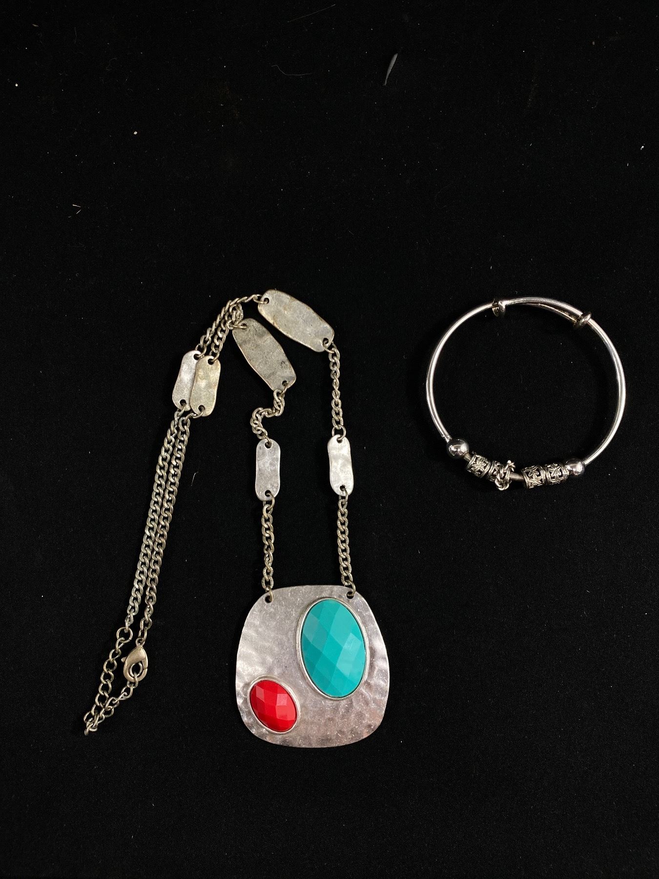 Unique Metal Pendant Necklace & Bangle (Self Adjusting)