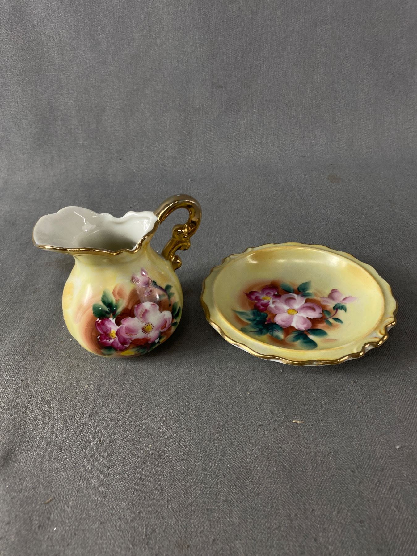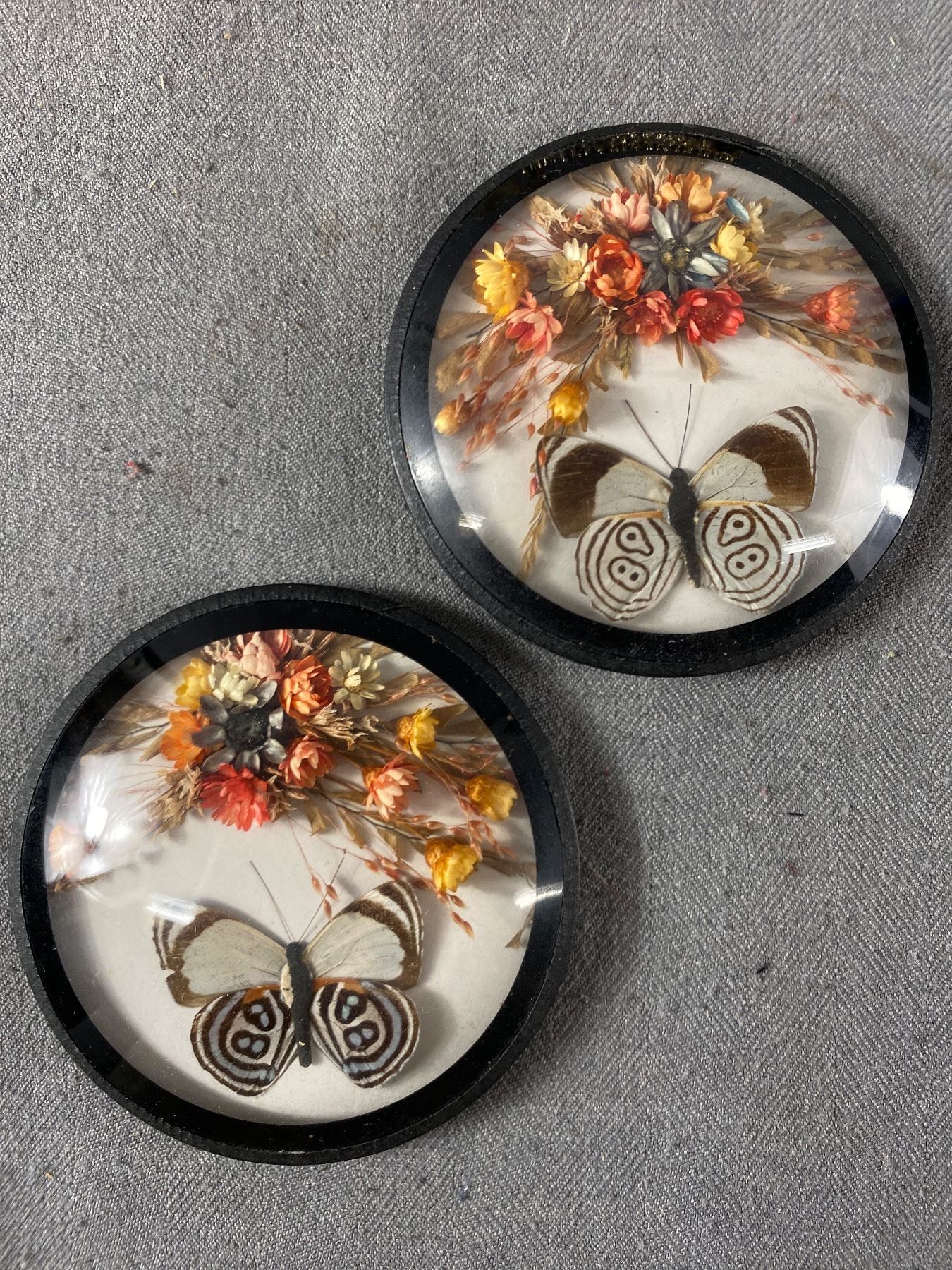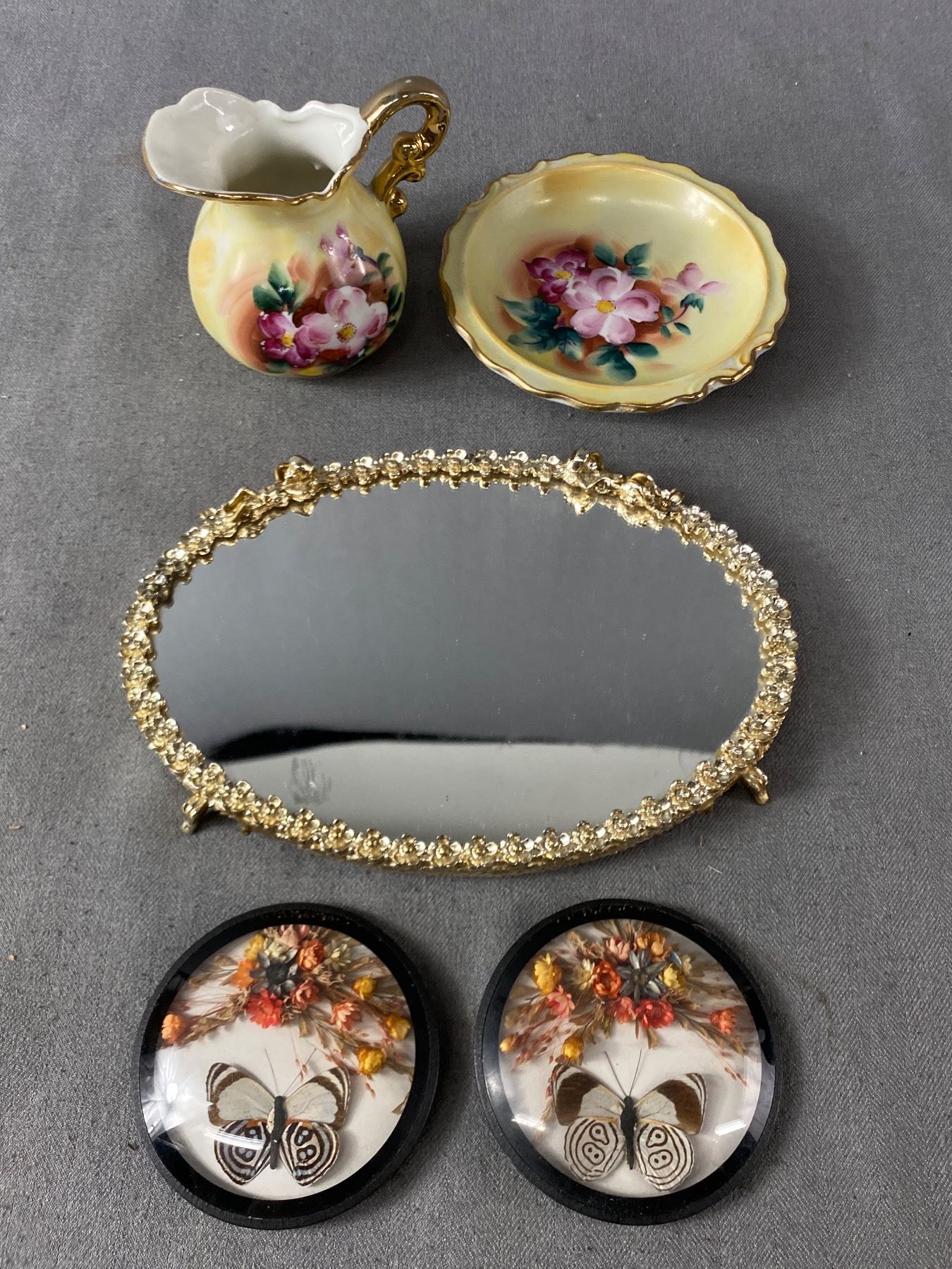 Unique Small Table Mirror, Pair of Real Butterfly Plaques and Pitcher and Plate