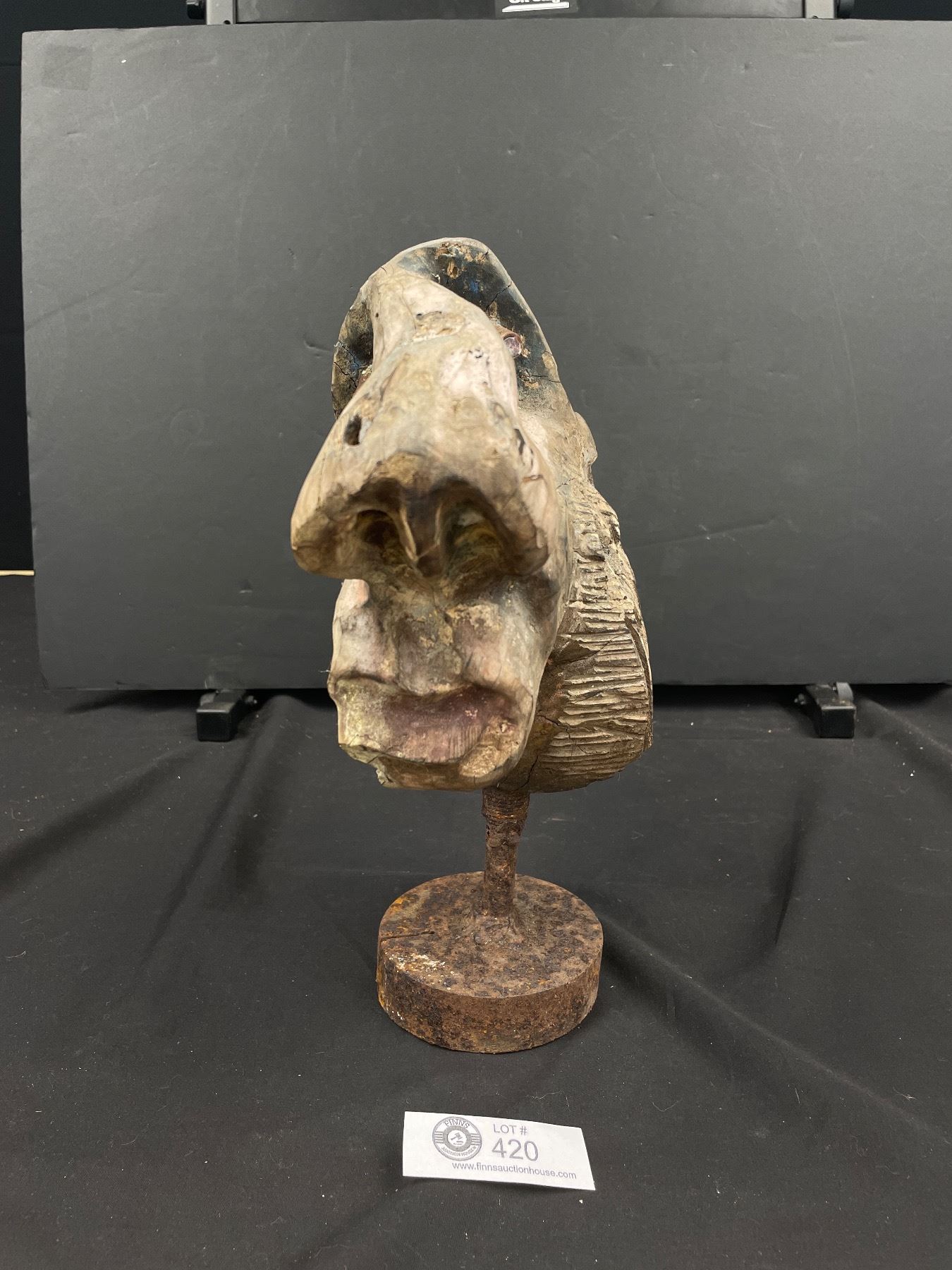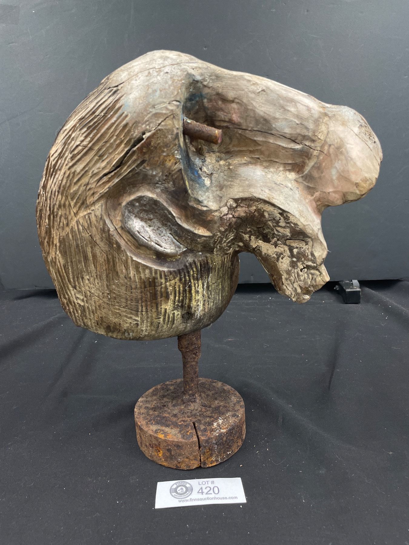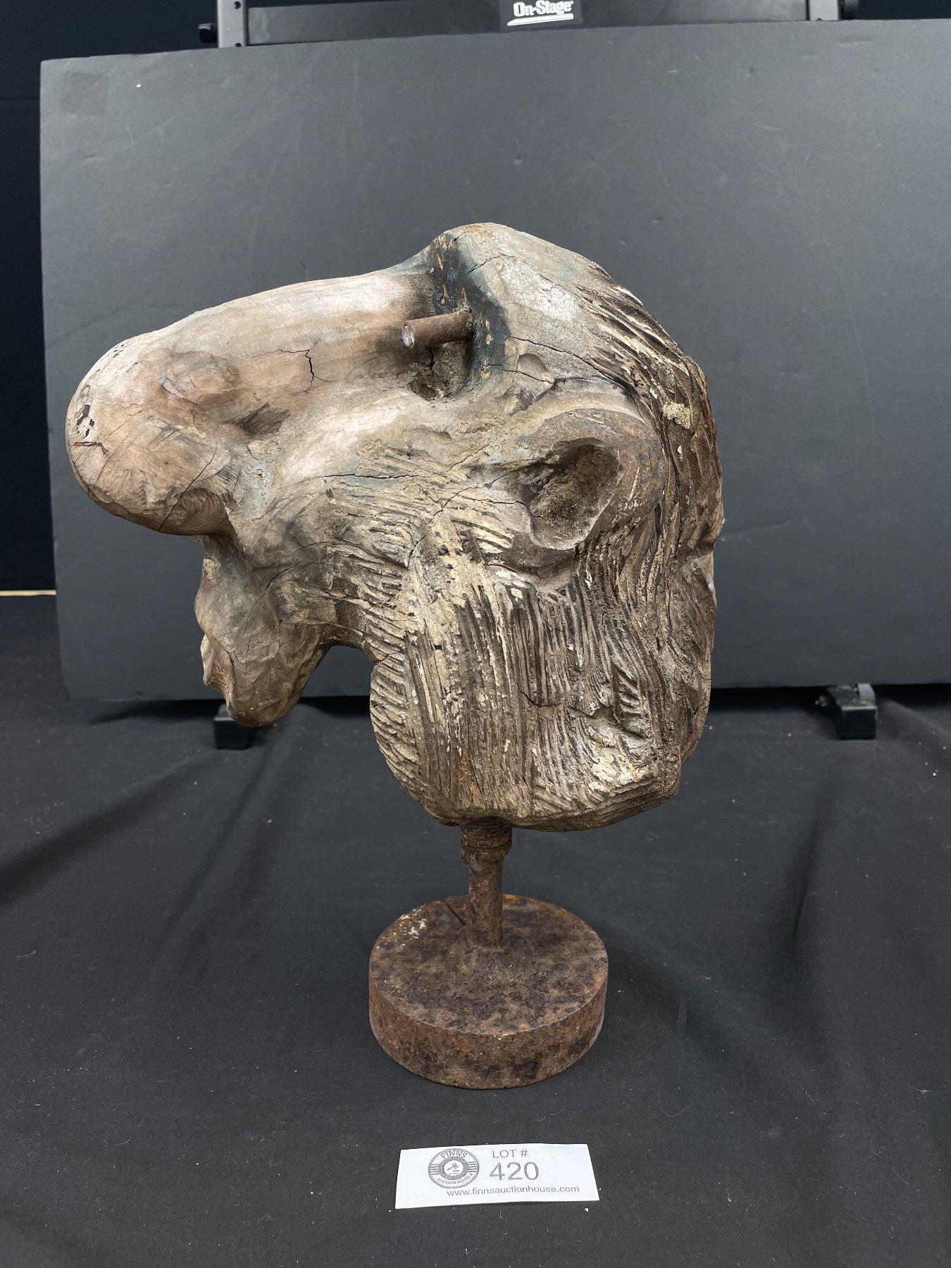 Unique Wooden Folk Art Carved Figure Head on Stand