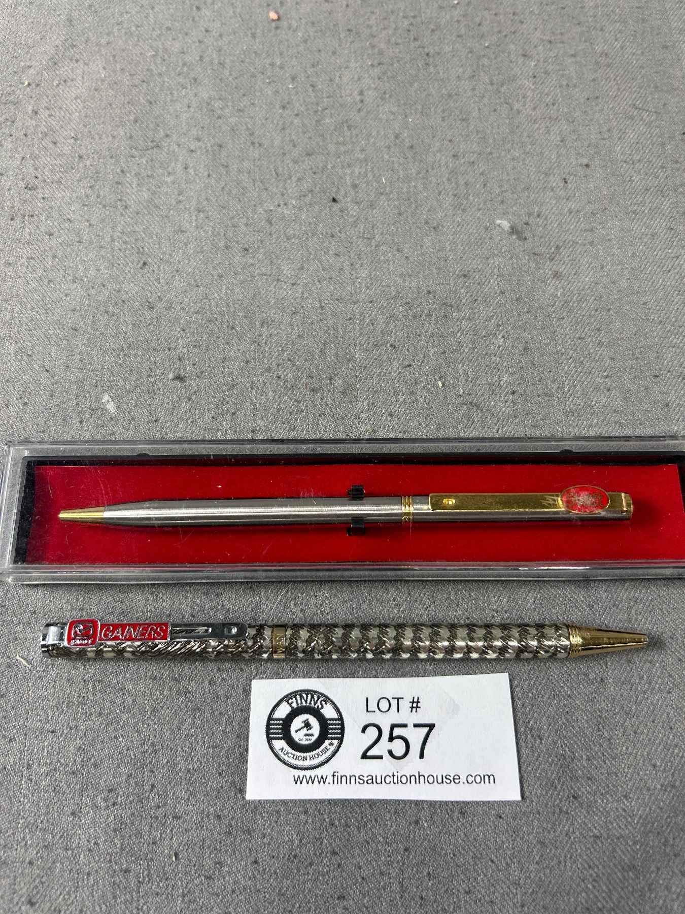 Unmarked Hand Etch Silver Pen & Gold Plated Pen In Original Box