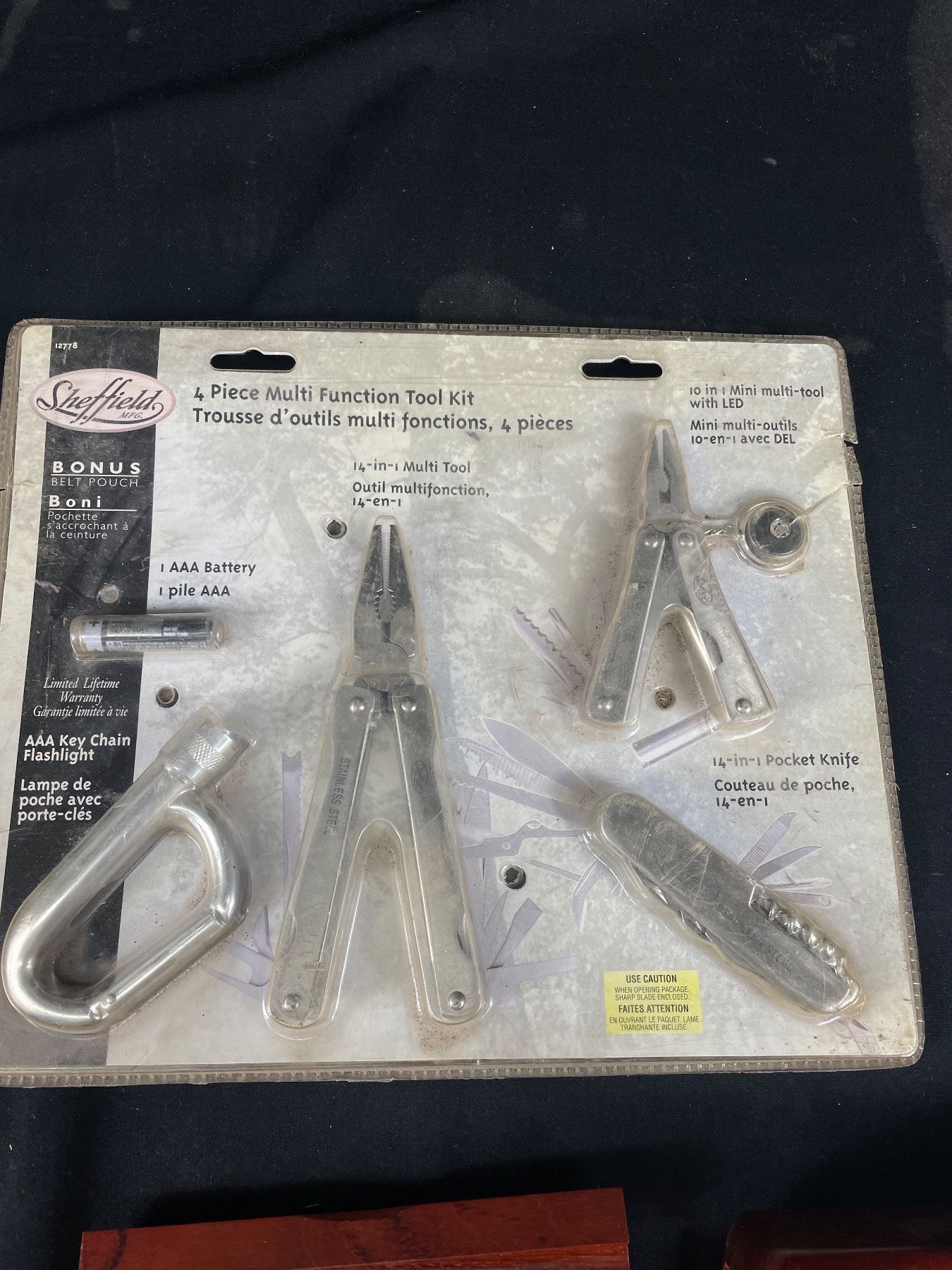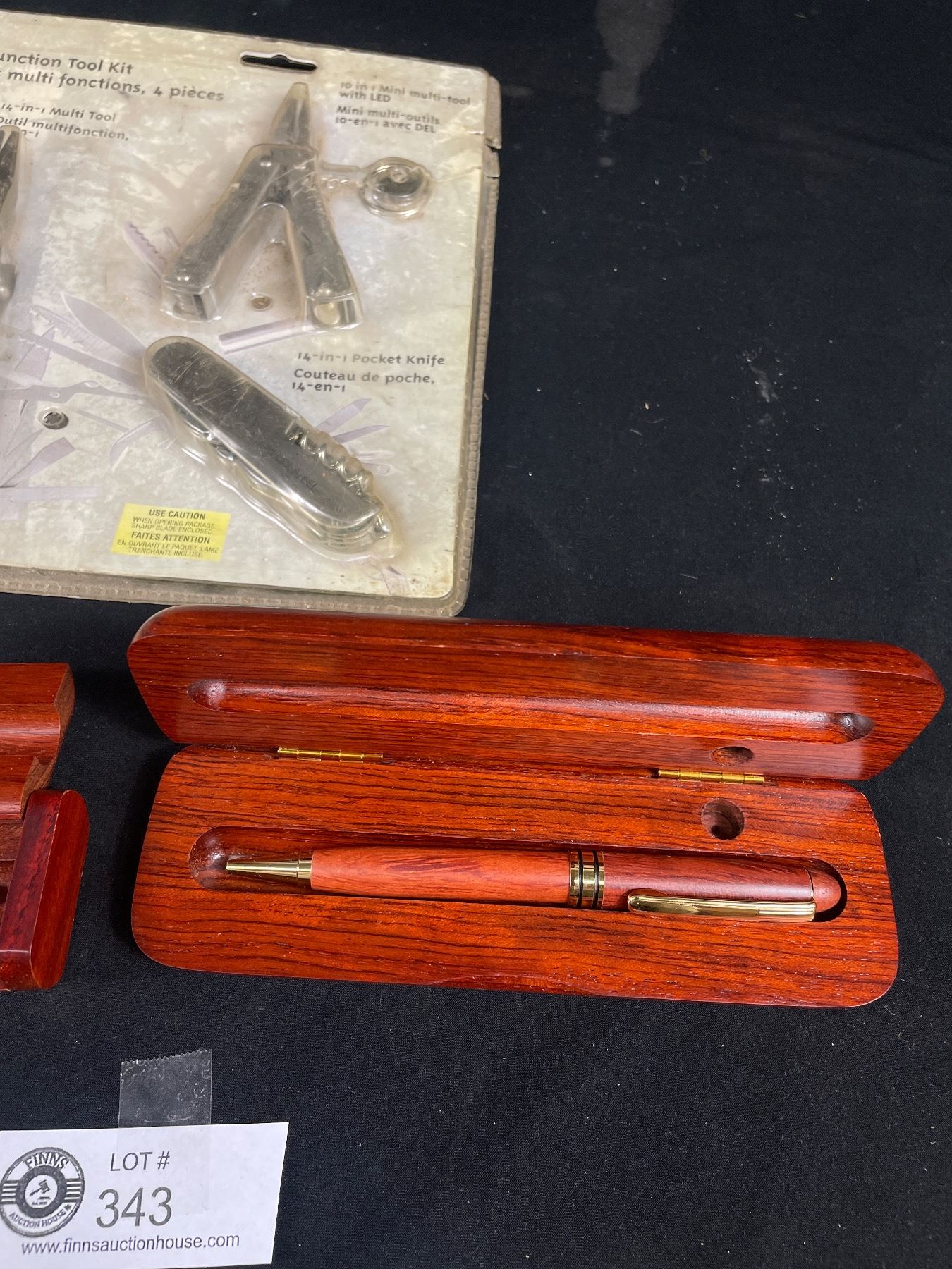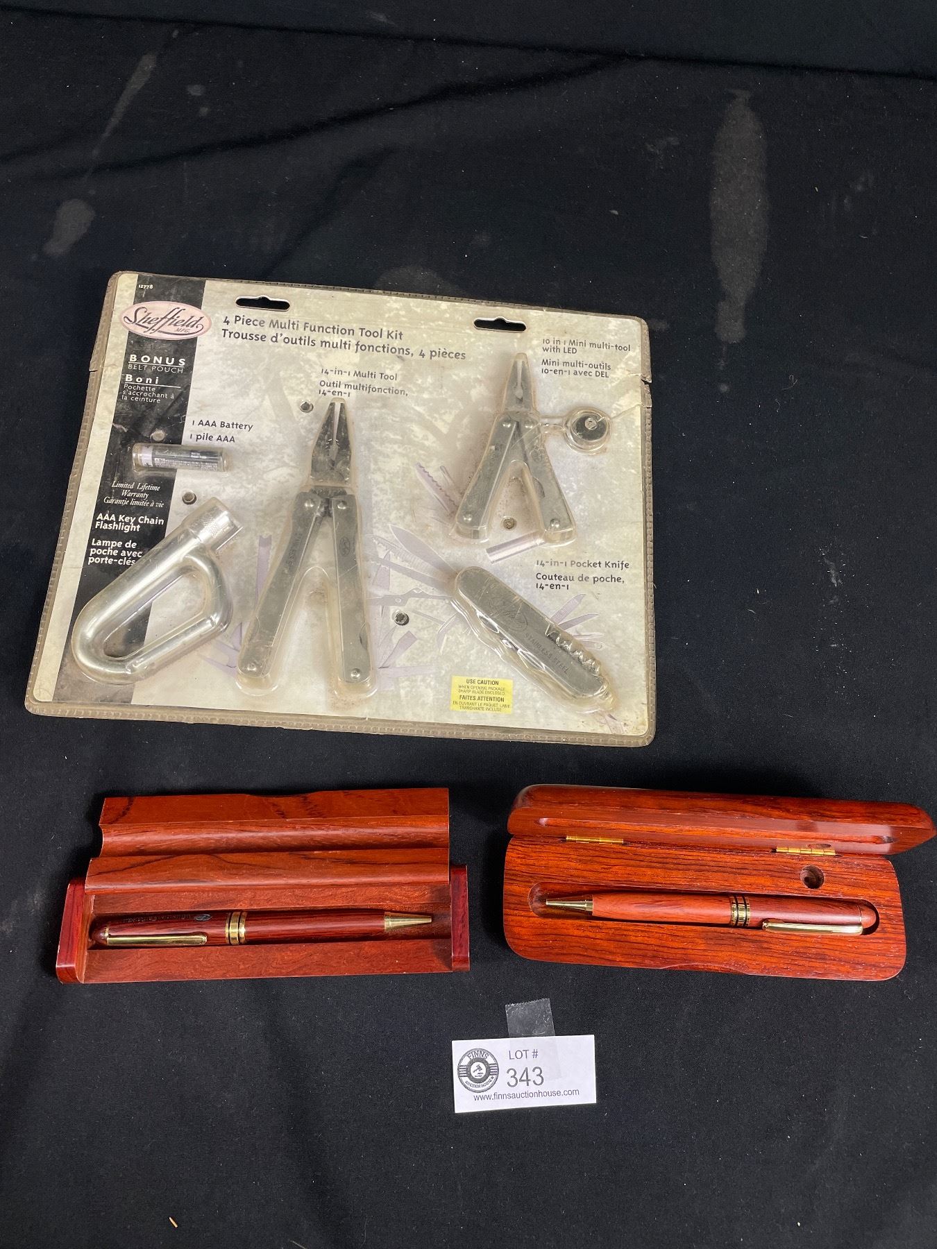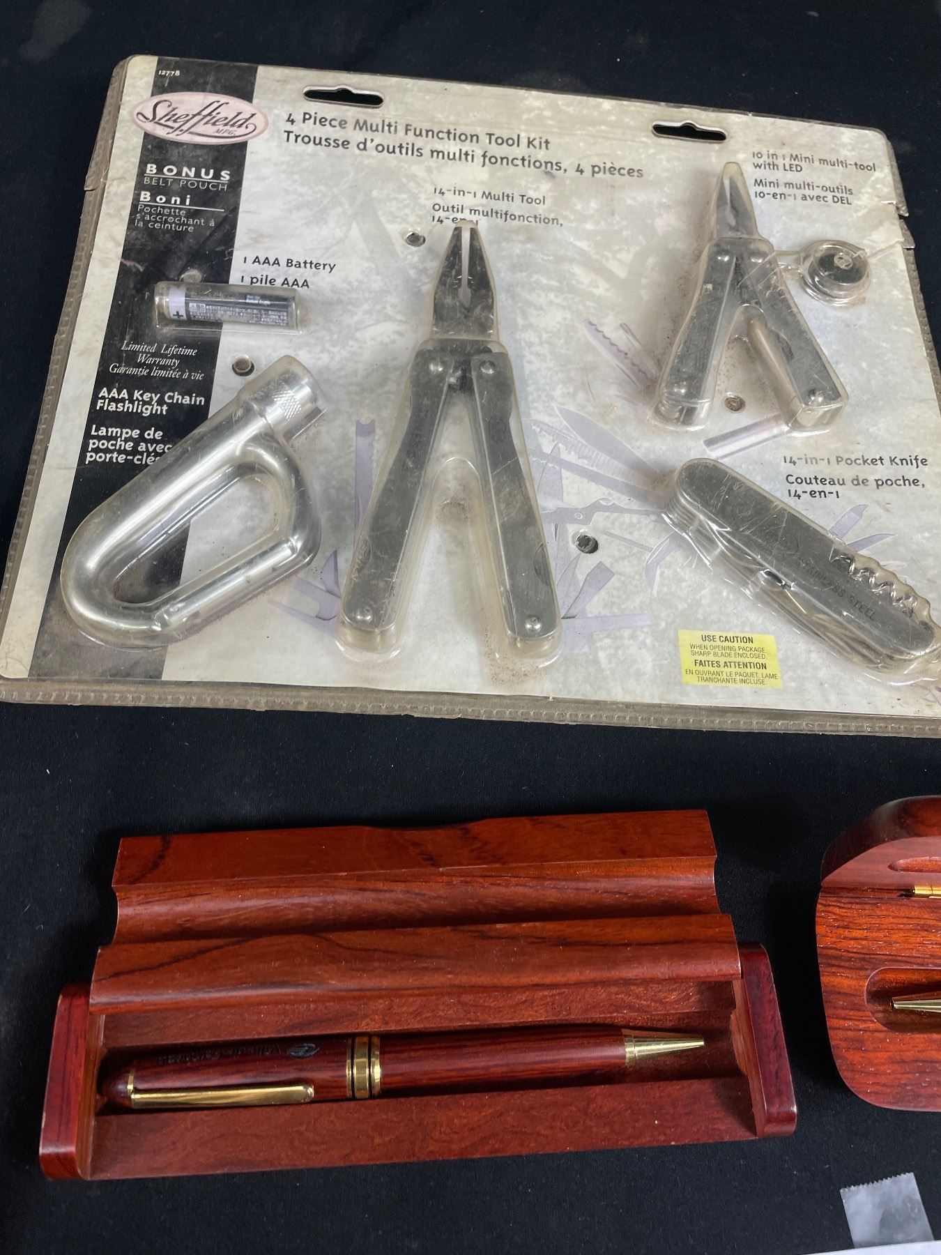 Unopened 4 Pc Multi Function Tool Kit + BC Lottery Pen in Wooden Case, etc