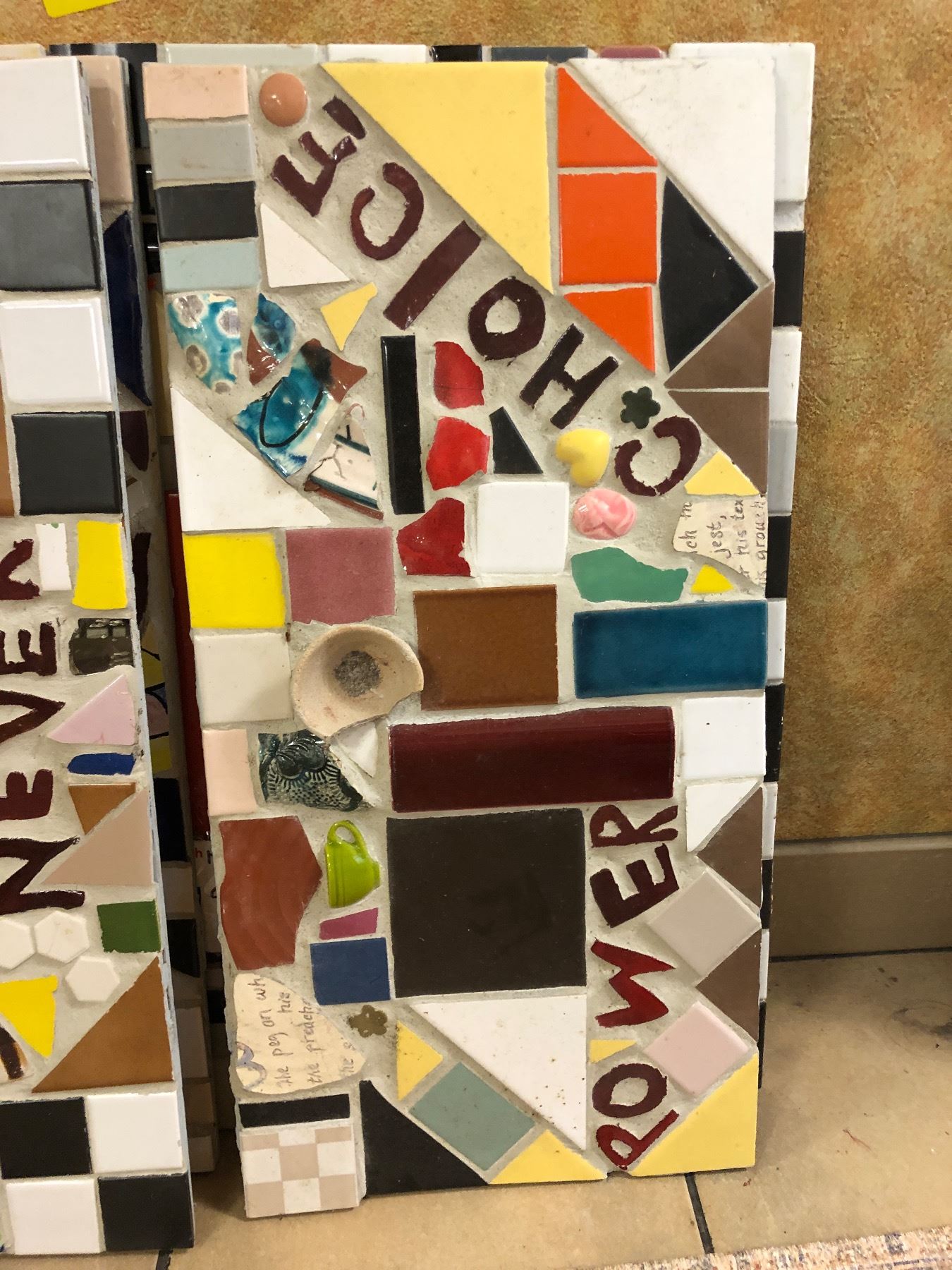 Untitled Mosaic Panel Ceramic tile on board (Michener, Sally) #'s 8,11, 9, 13 & Untitled - Mosaic Panel (Diptych Panel 2 of 2) Ceramic tile on board (Michener, Sally)
