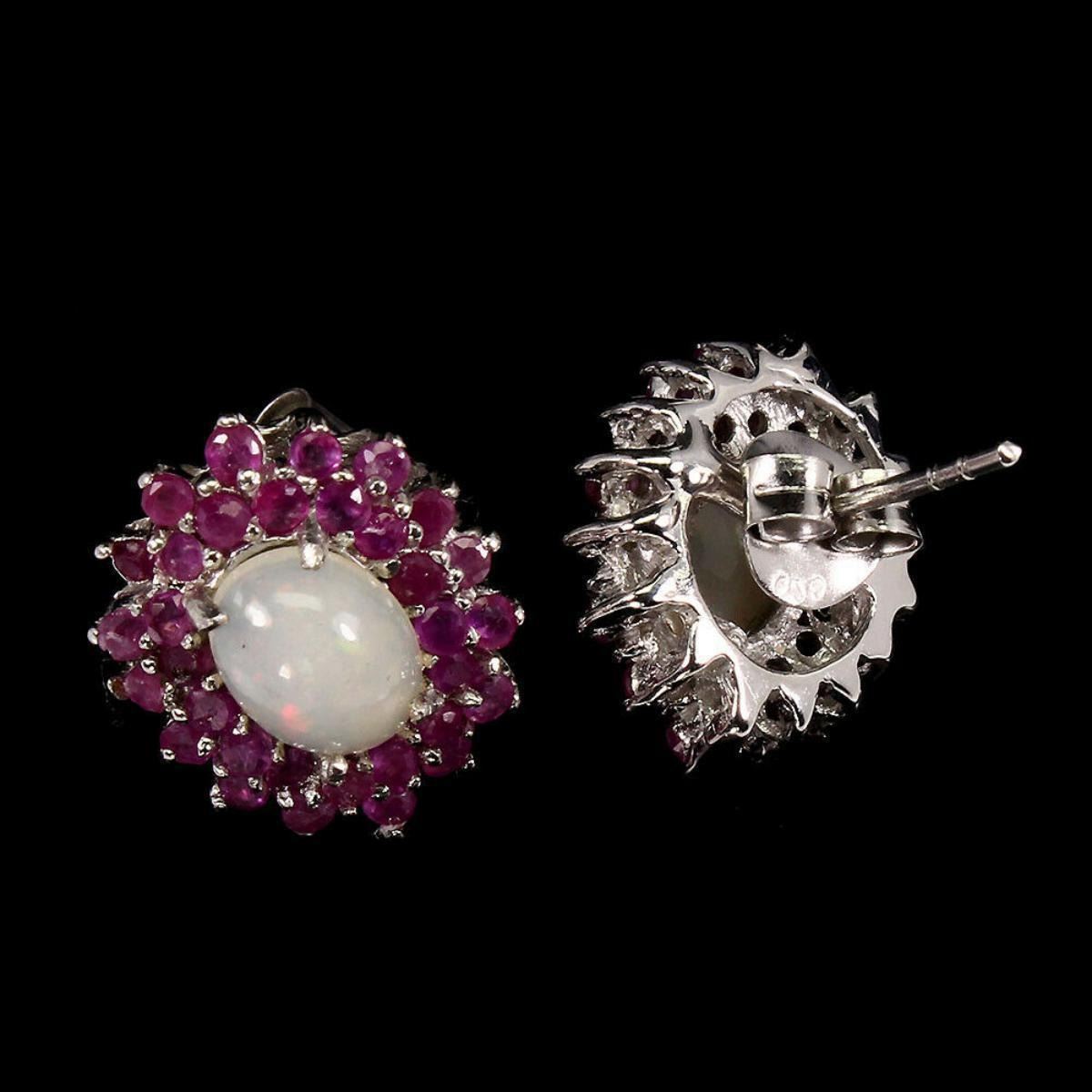 925 STERLING SILVER;PLATE14K WHITE GOLD;MAIN STONE-FIRE OPAL;OTHER GEMS--RUBY;TOTAL WEIGHT-4.7 GRAM (TOTAL WEIGHT OF SILVER + STONE)DIMENSION* STONE 1.5 TO 8.0 X 6.0 MM. * FACE EARRINGS 16.0 X 13.0 MM.;MAIN STONE SHAPE-OVAL CABOCHON;MAIN STONE COLOR-RAINBOW FULL FLASH;CLARITY/GRADE-TRANSPARENT;LUSTER-PRECIOUS;ORIGIN-ETHIOPIA-HARDNESS-5.5 - 6.5-