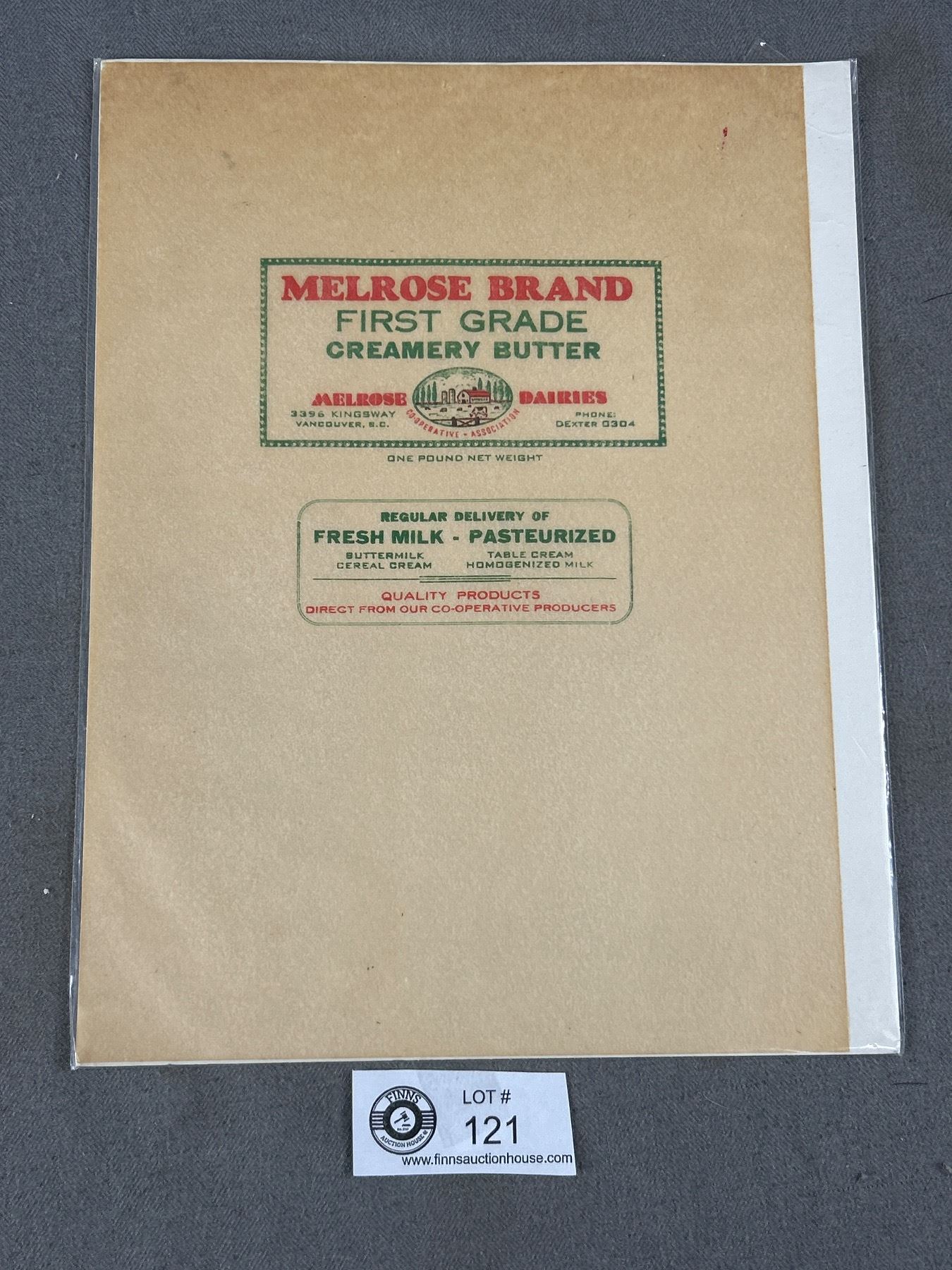 Unused Vintage Butter Wrapper Melrose Dairies Vancouver