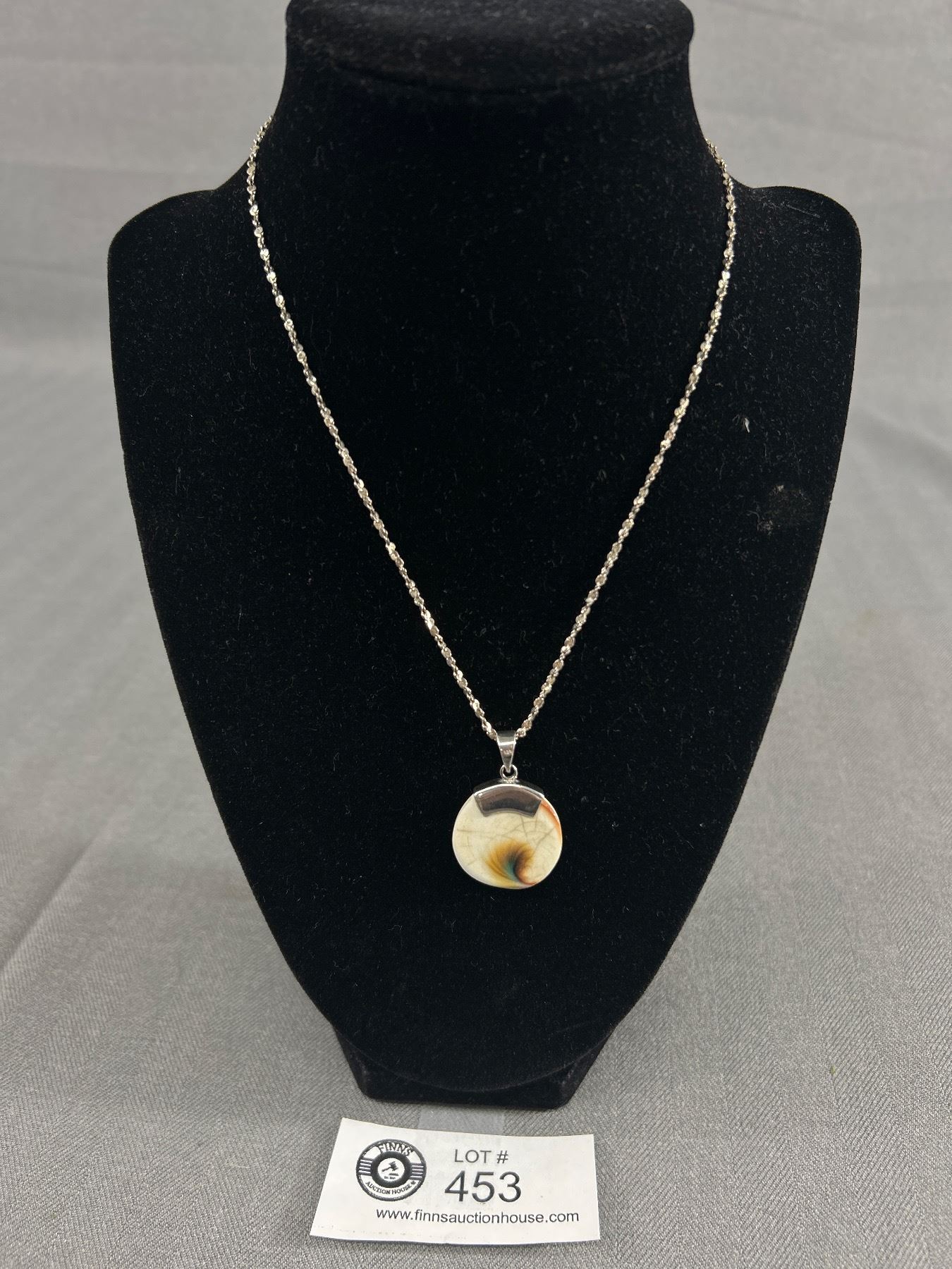 Unusual 925 Sterling Silver with What Looks Like a Fossil Pendant and a 16" Sterling Chain