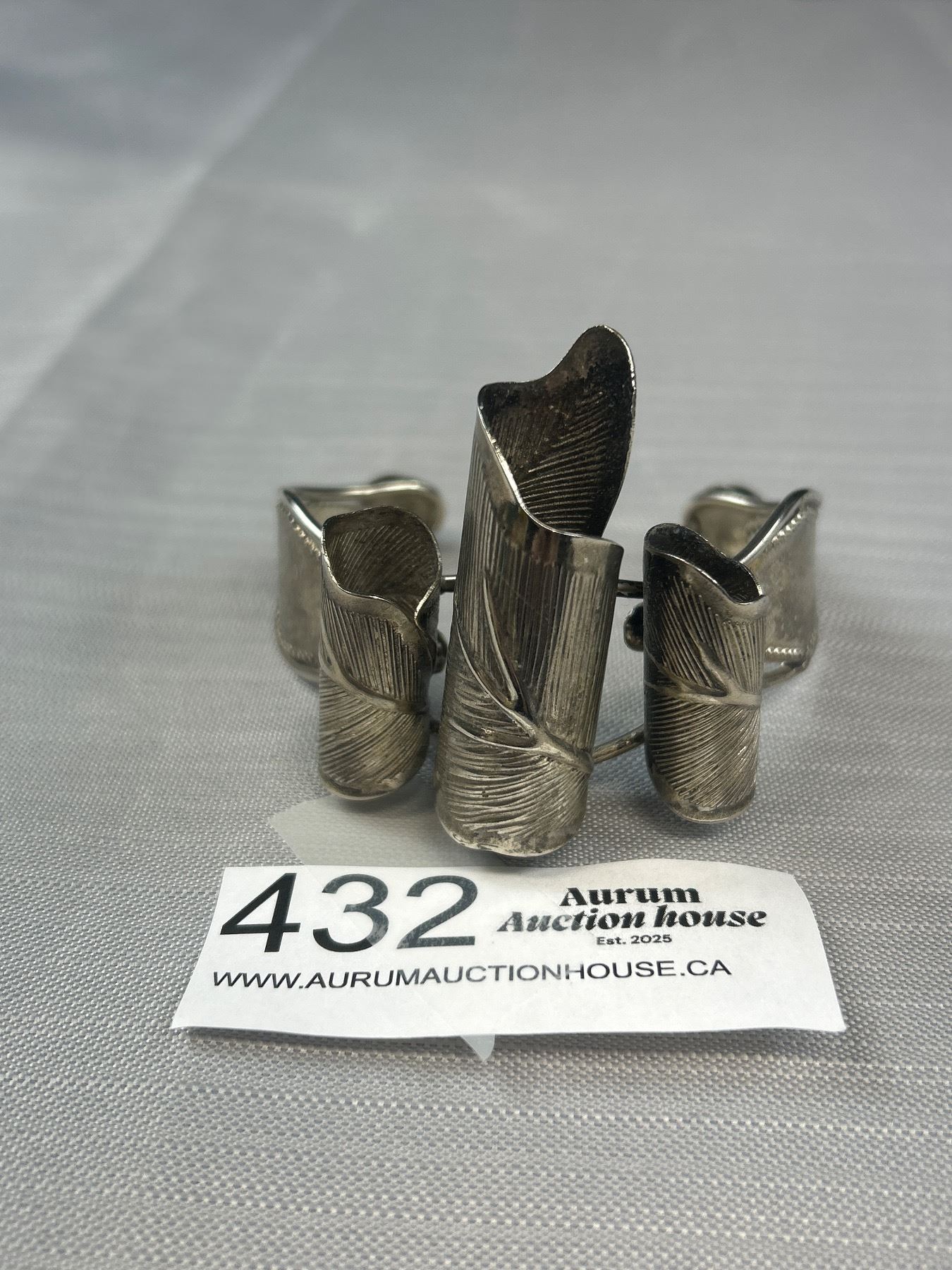 Unusual Hand Crafted Silver Open Cuff Bangle