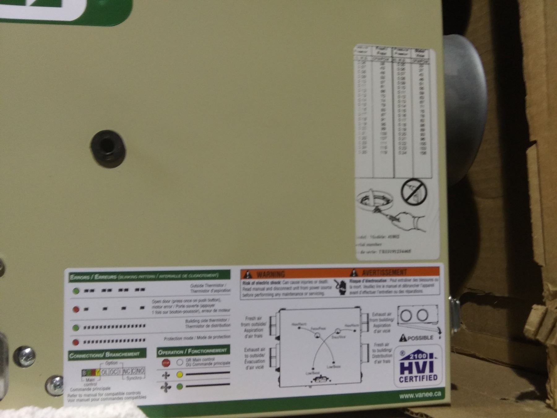 VANEE 70E+ HVI CERTIFIED AIR EXCHANGER SYSTEM