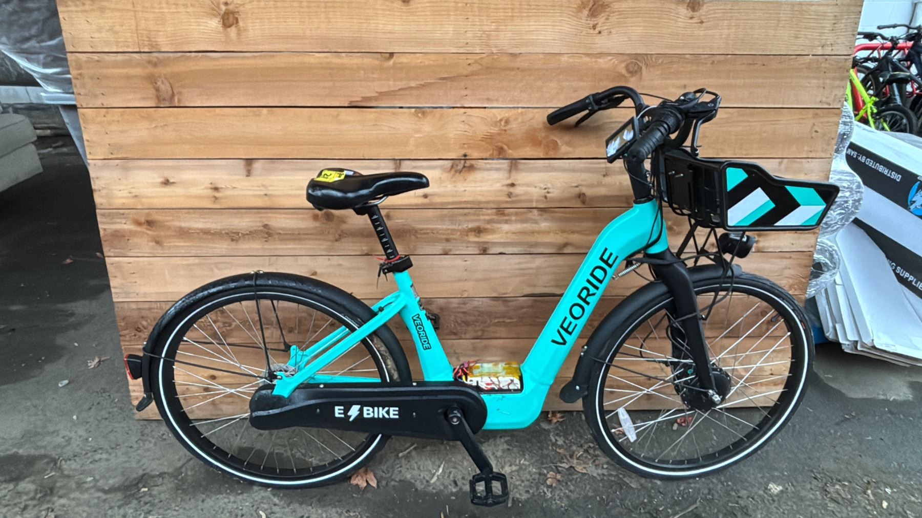 VEORIDE BLUE E-BIKE WITH BASKET - *BATTERY COVER MISSING/DOES NOT START/NO CHARGER*
