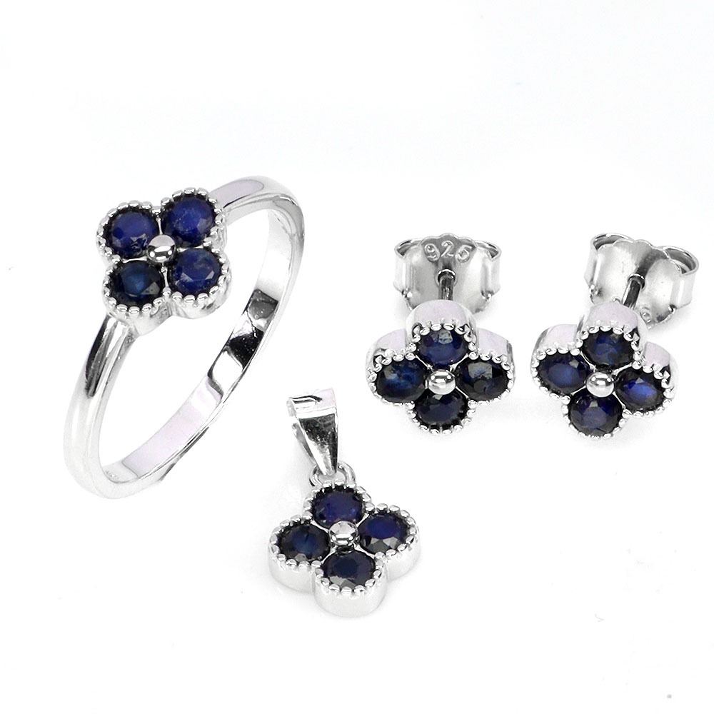 VERY RARE BLACK SAPPHIRE SET (RING, EARRINGS, PENDANT) IN 14K WHITE PLATED GOLD OVER 925 STERLING SI