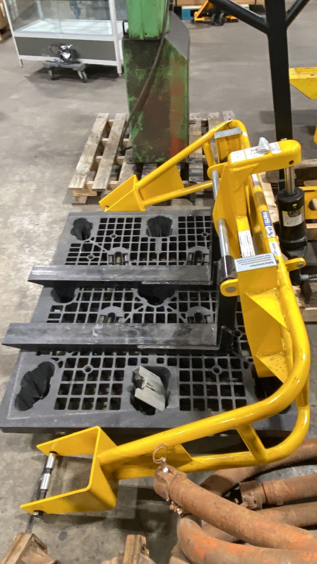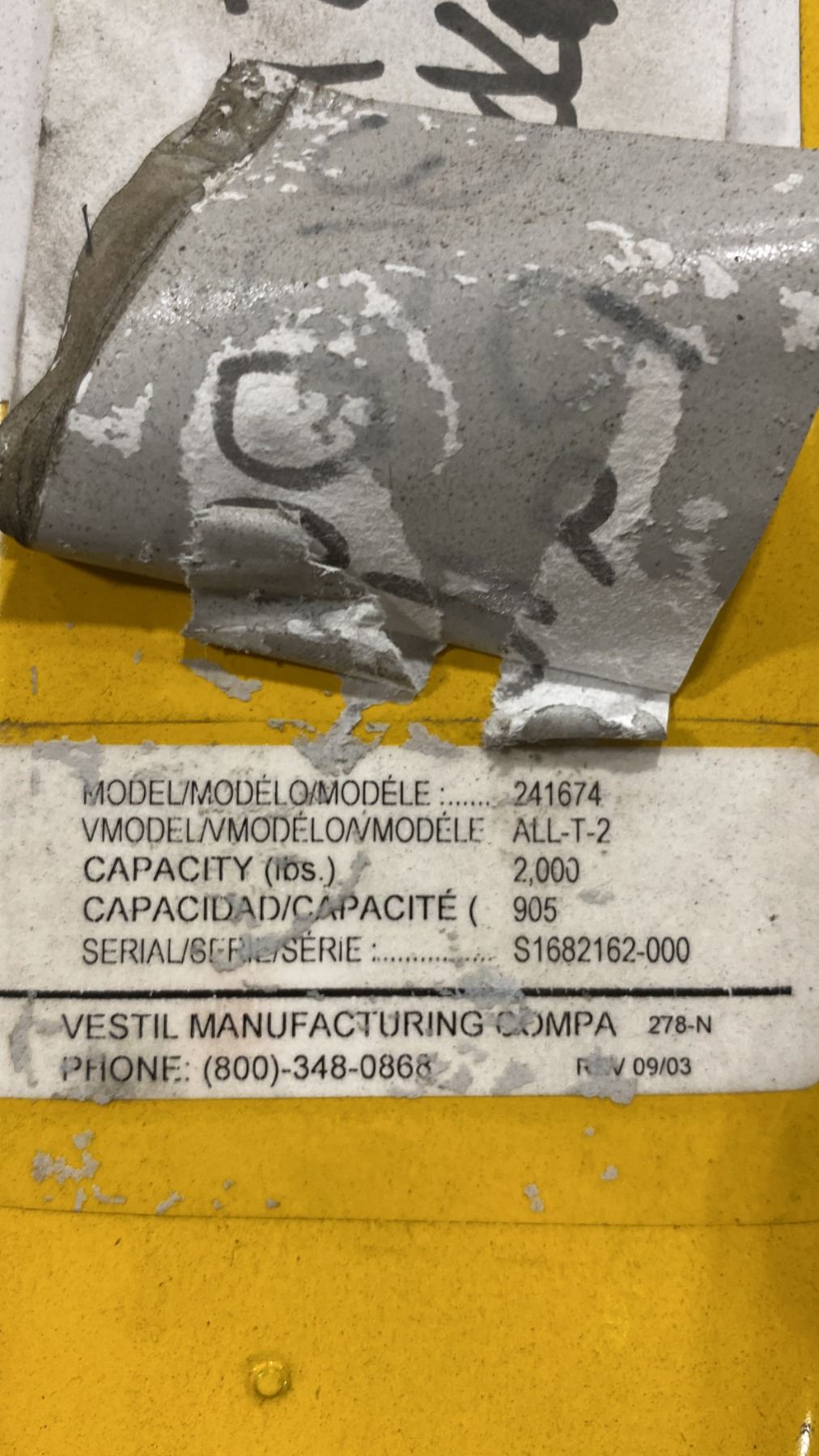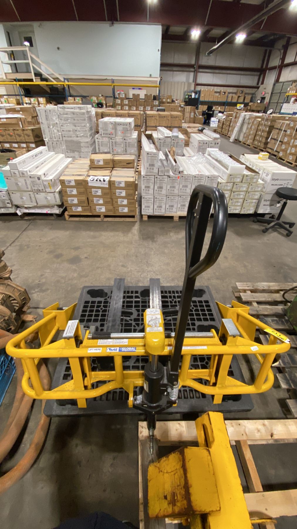 VESTIL GLOBAL 241674 YELLOW 2000 LBS INDUSTRIAL WIDE STABILIZING PALLET JACK *MISSING WHEELS*